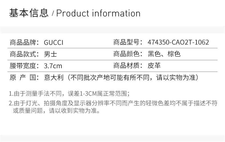 GUCCI/古驰 黑色男士中性腰带 474350-CAO2T-1062JPY带授权招加盟代理