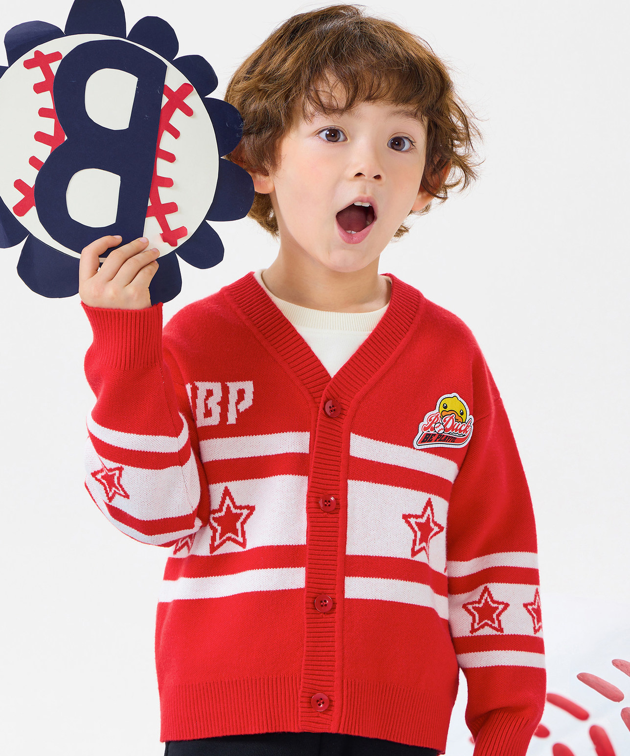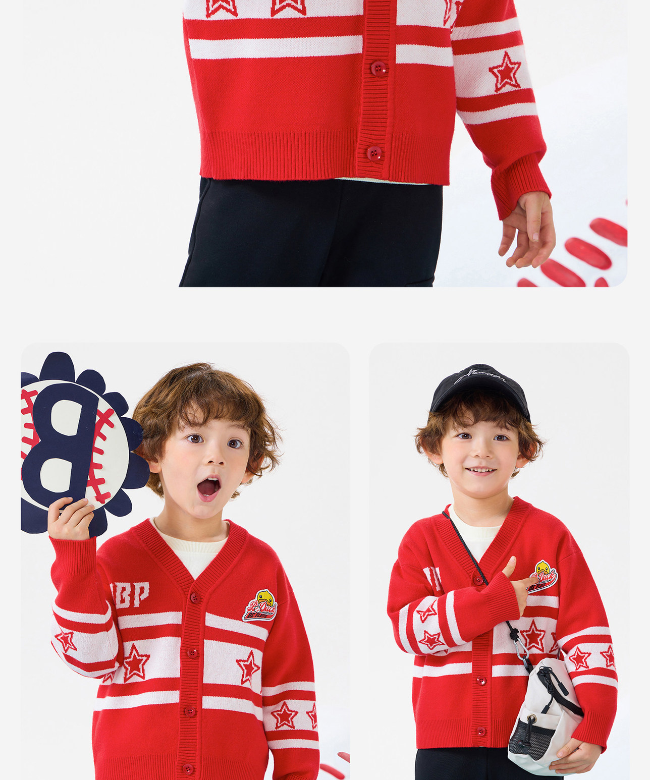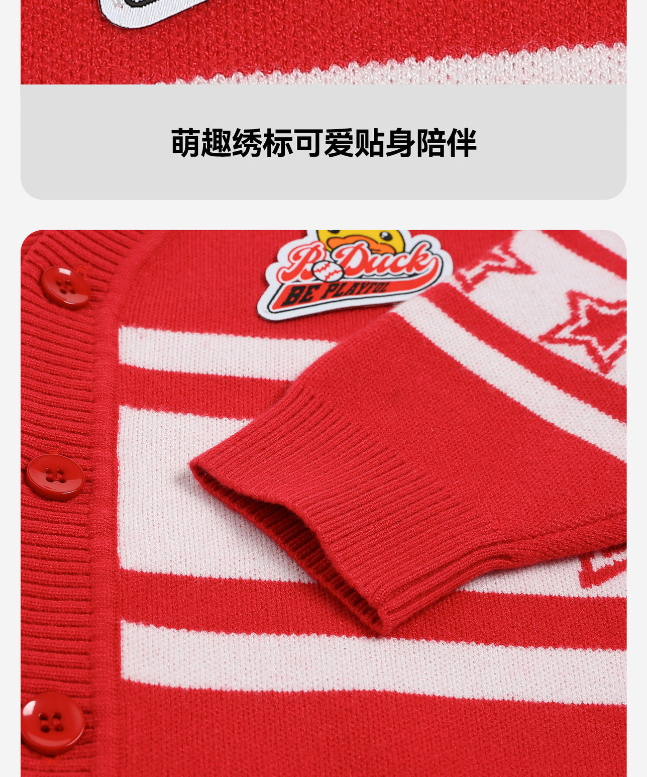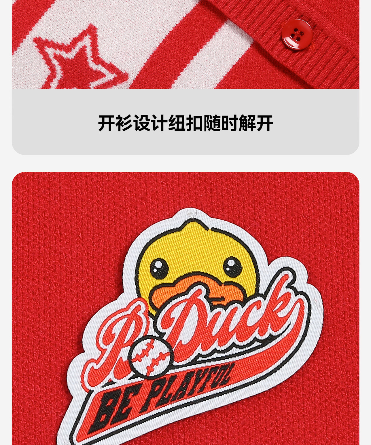 bduck小黄鸭童装春秋儿童红色毛衣开衫V领男童针织衫外套春季105-150 BF1612031
