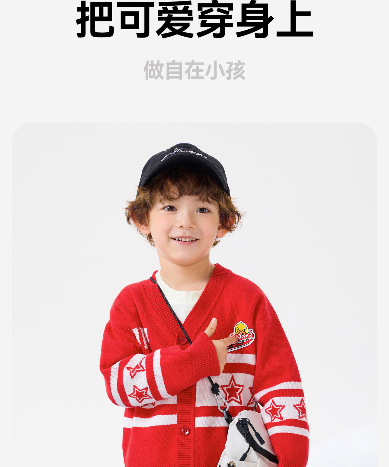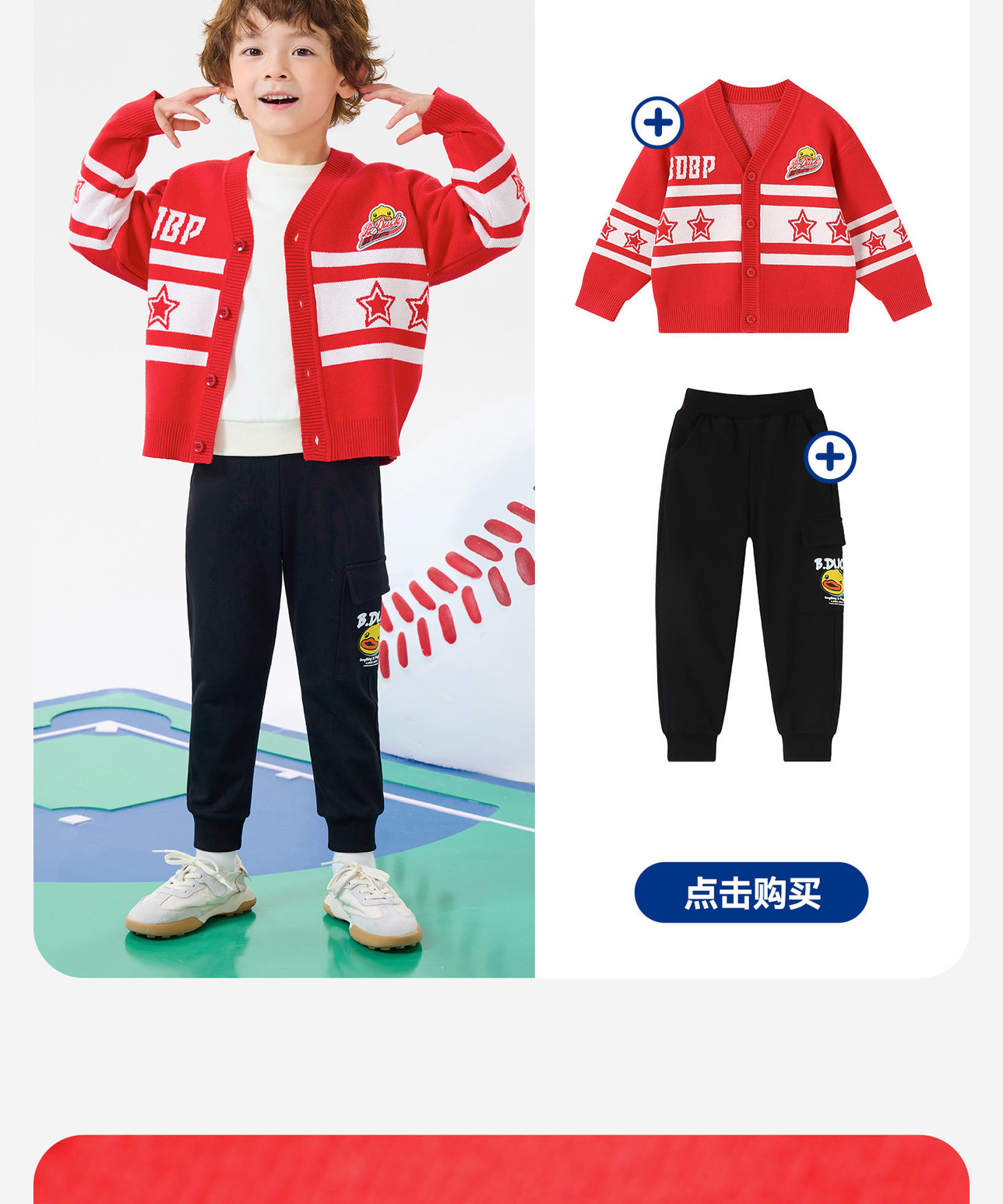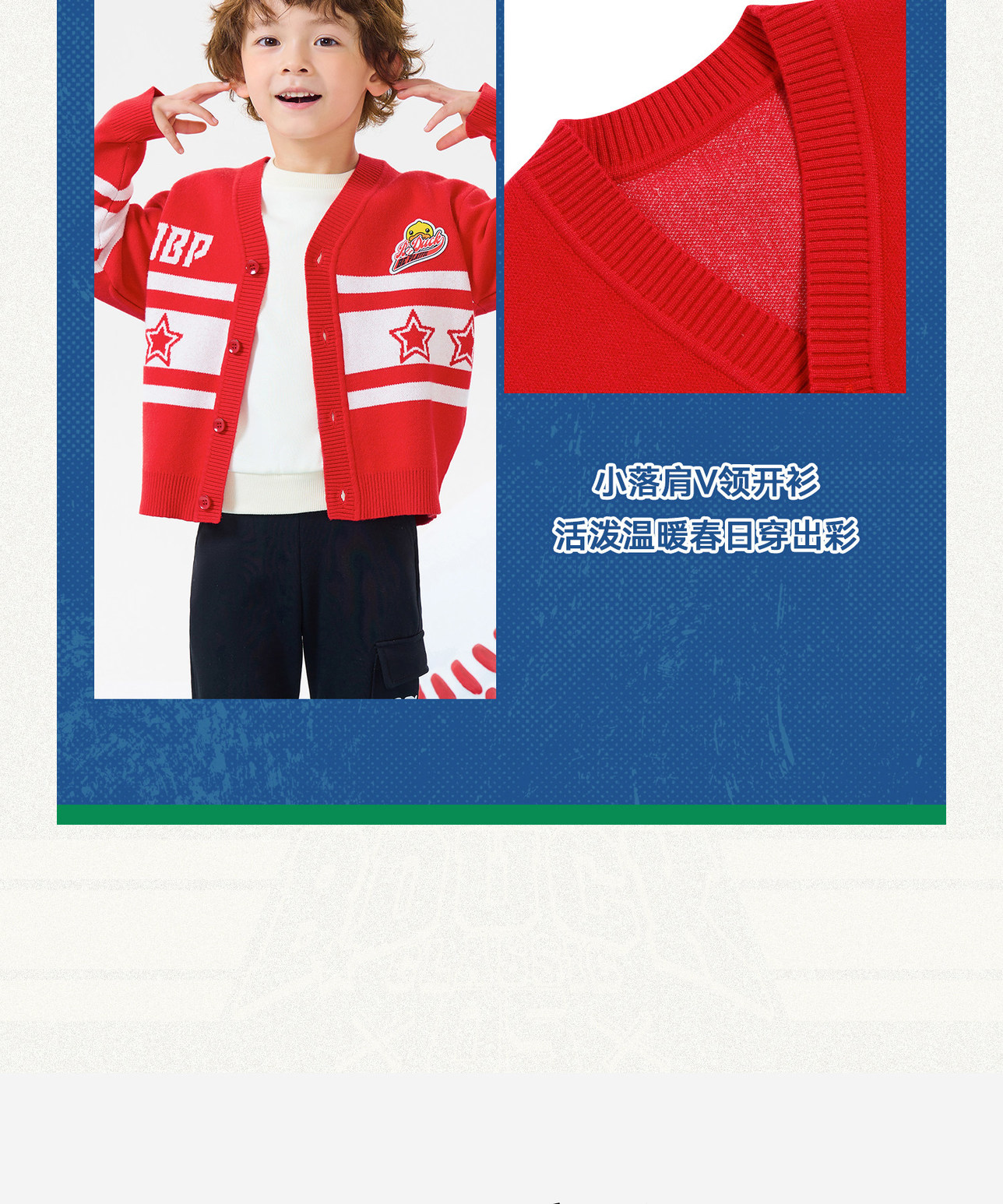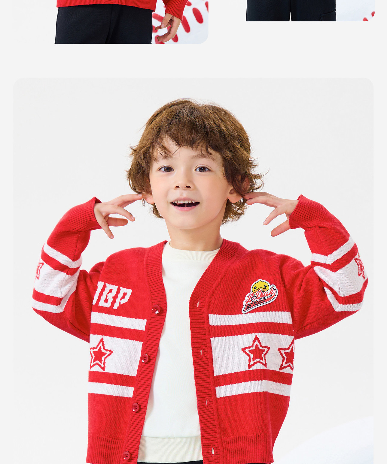 bduck小黄鸭童装春秋儿童红色毛衣开衫V领男童针织衫外套春季105-150 BF1612031
