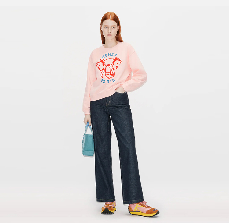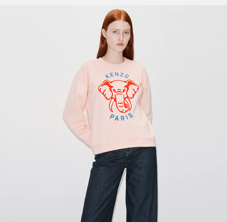 KENZO 高田贤三 女士大象徽标印花棉质长袖卫衣 粉色 FD62 SW093 4MF 34