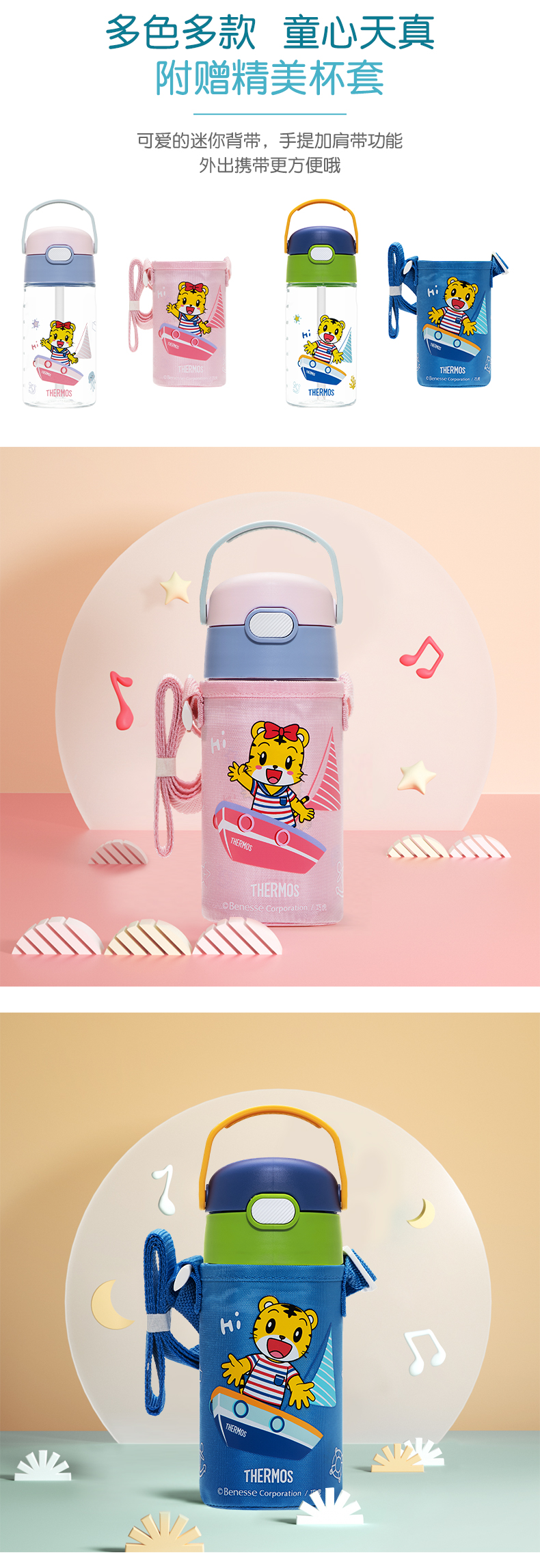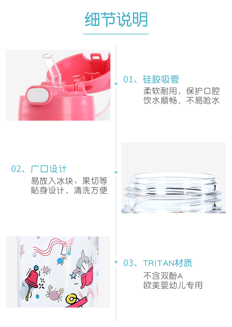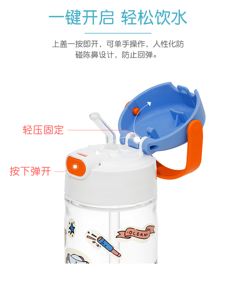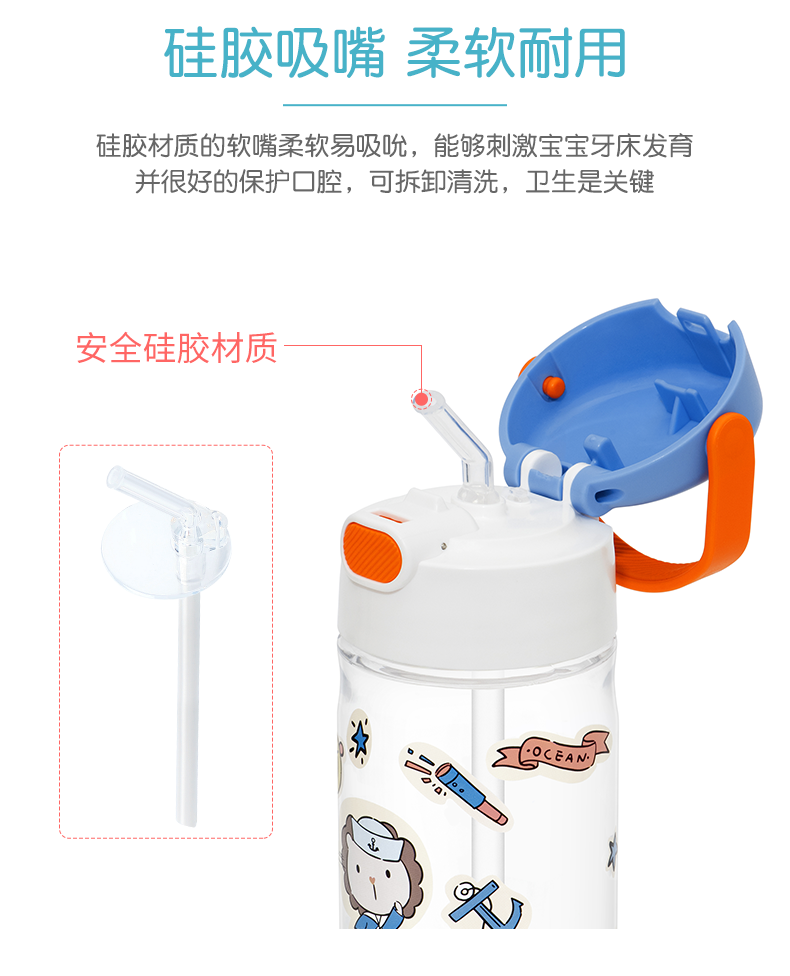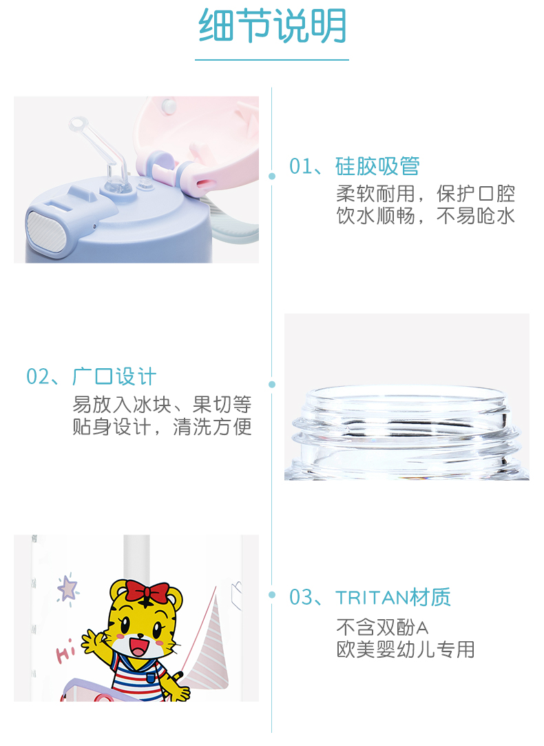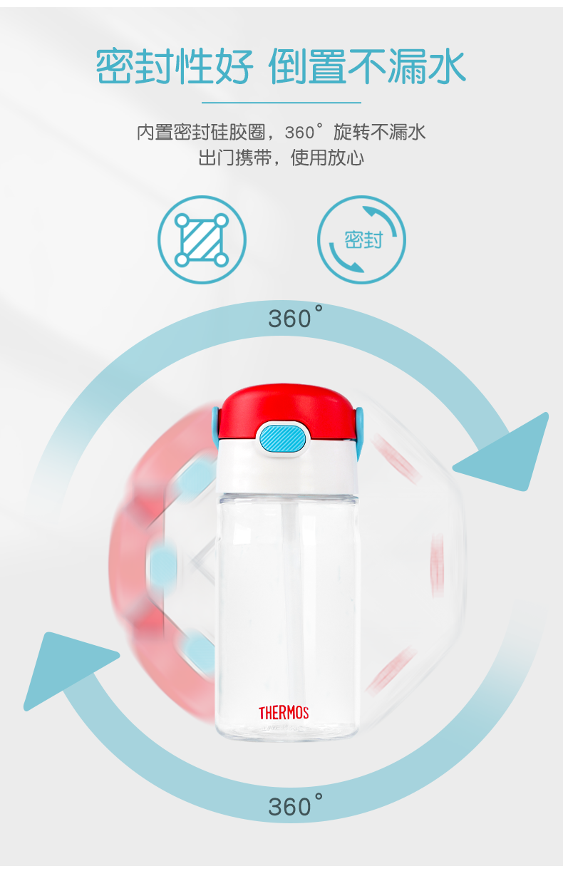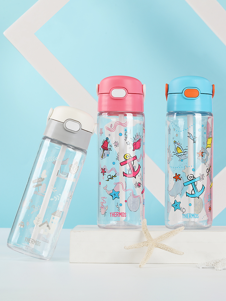 膳魔师/THERMOS航海探险tritan巧虎宝宝儿童吸管杯儿童水杯夏季杯赠贴纸420ml提手背带杯套-SMS-BBSD-400-RB