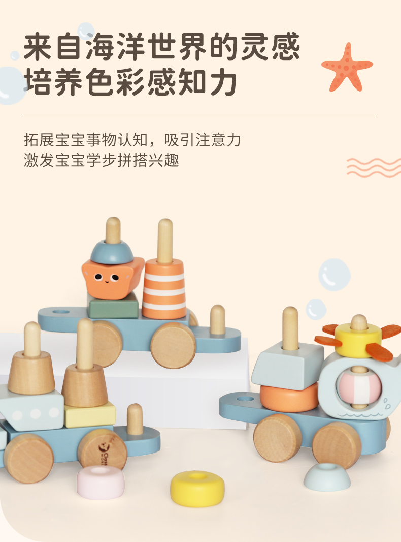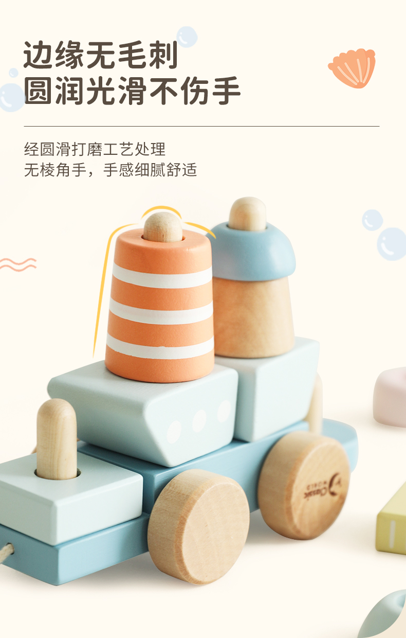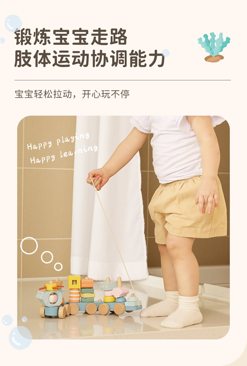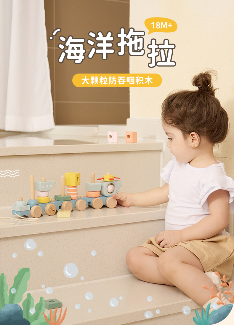 可来赛海洋小拖拉车男女宝宝学步多功能积木拼搭儿童拉绳牵引玩具