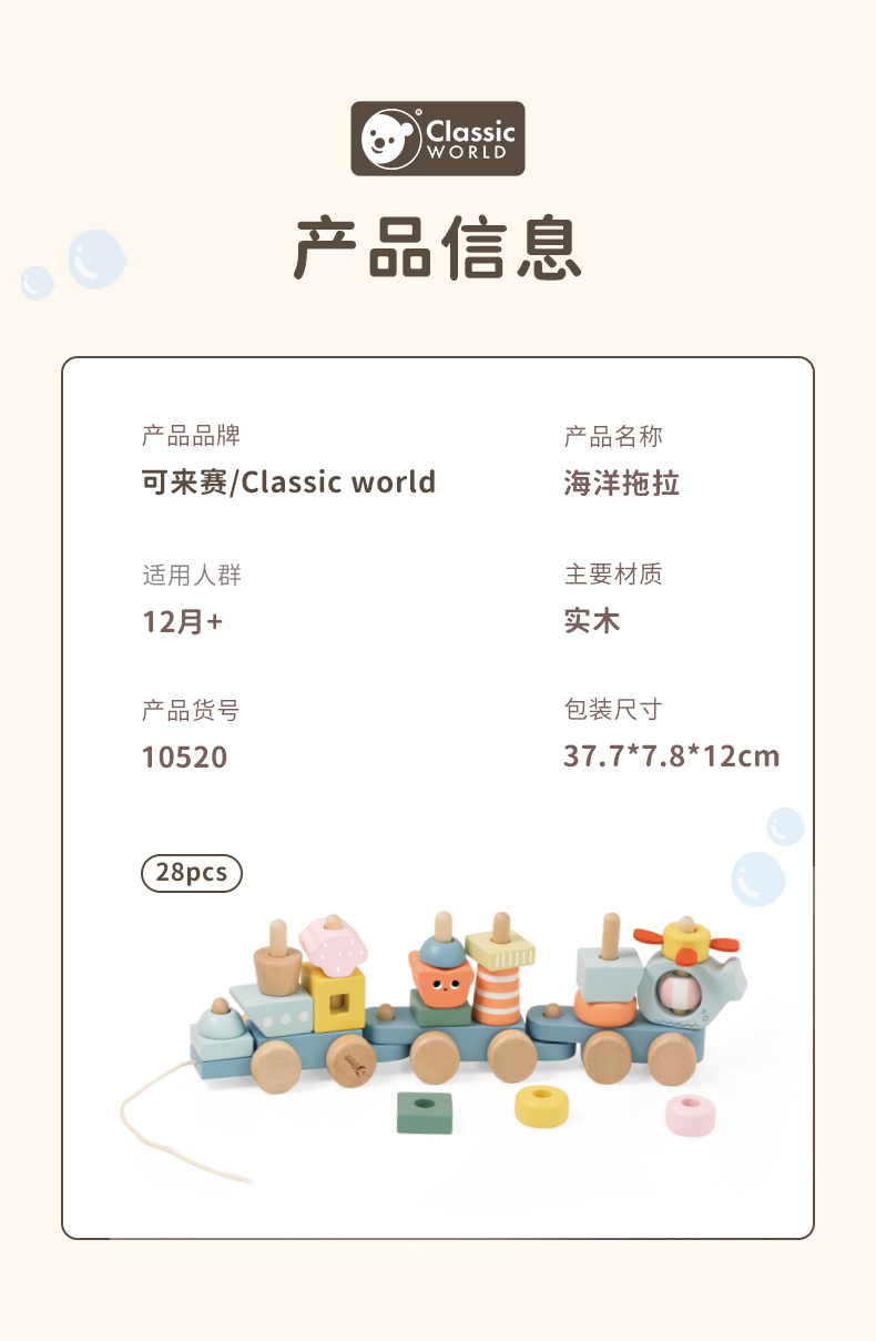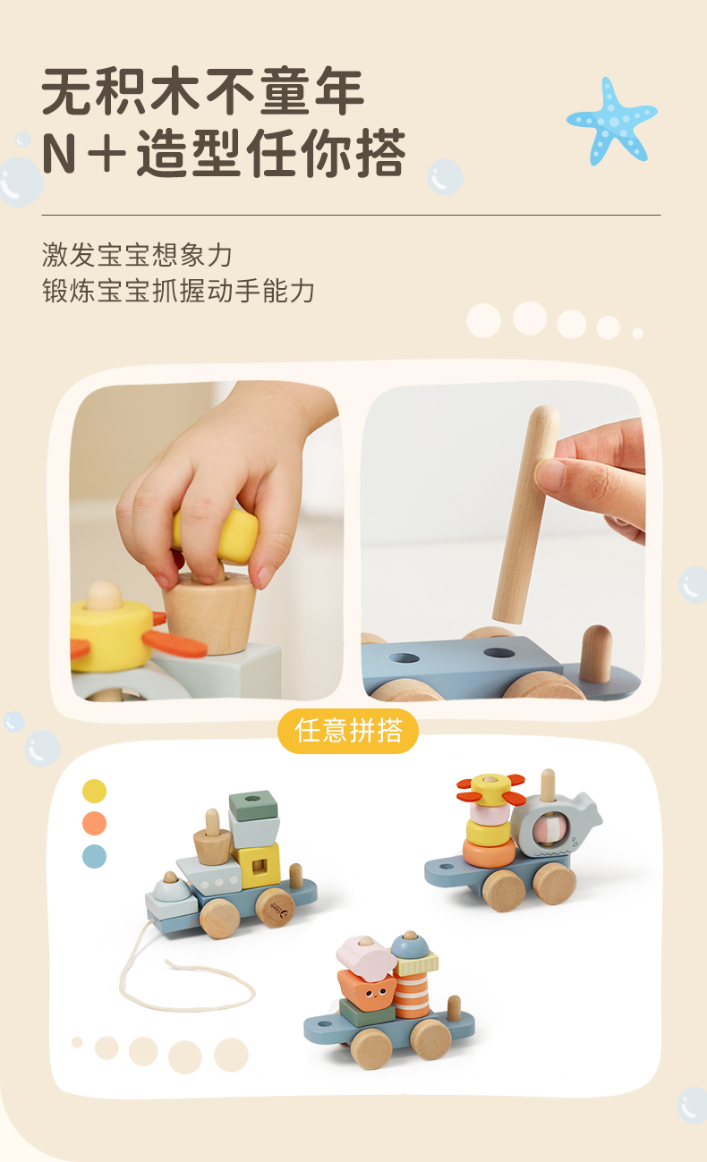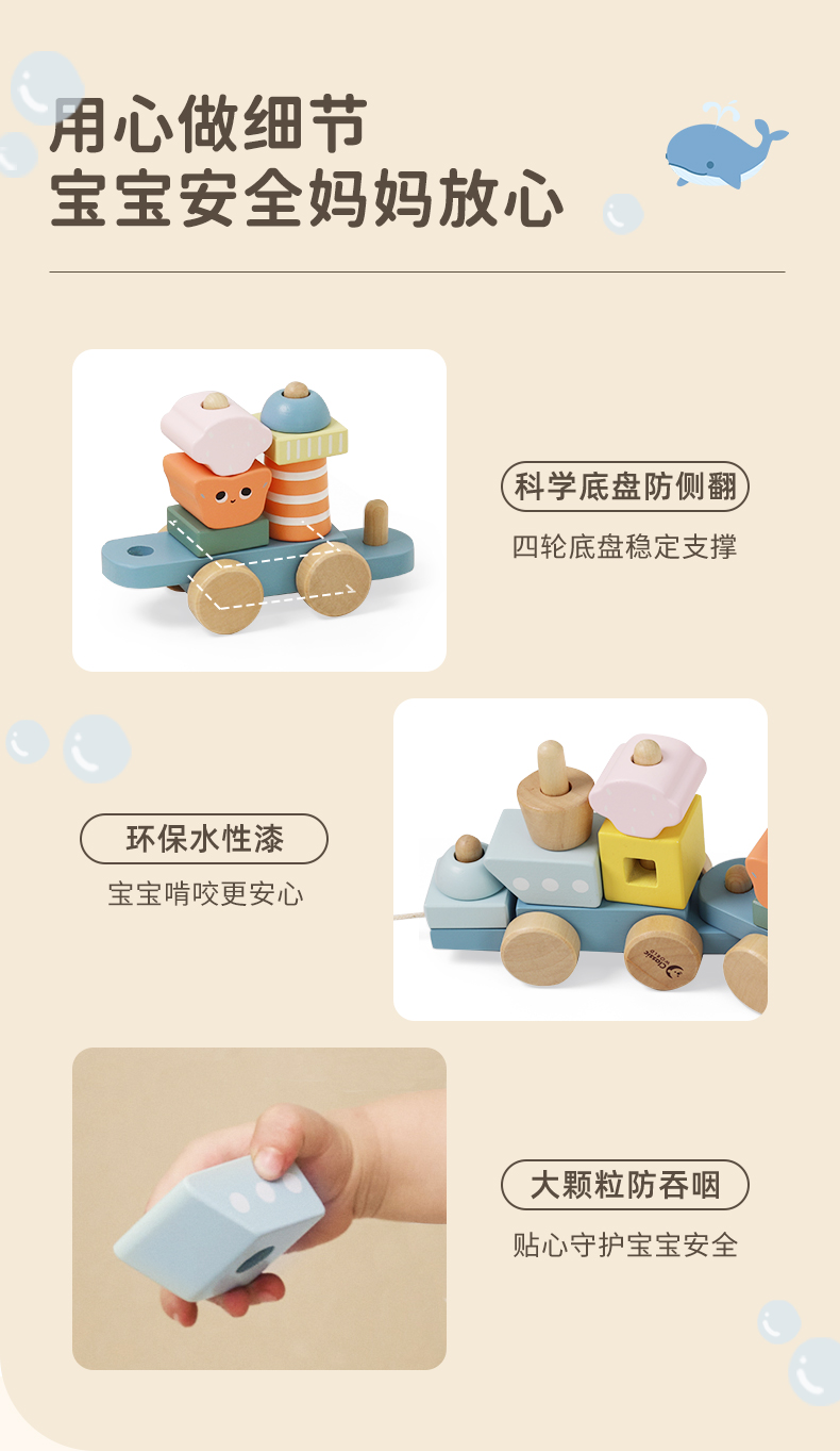 可来赛海洋小拖拉车男女宝宝学步多功能积木拼搭儿童拉绳牵引玩具