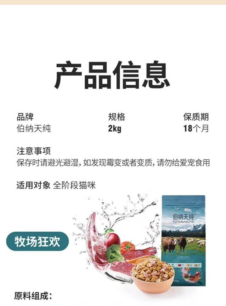 伯纳天纯猫粮农场狂欢全价全猫期通用成猫幼猫粮英短美短蓝猫室内猫2kg