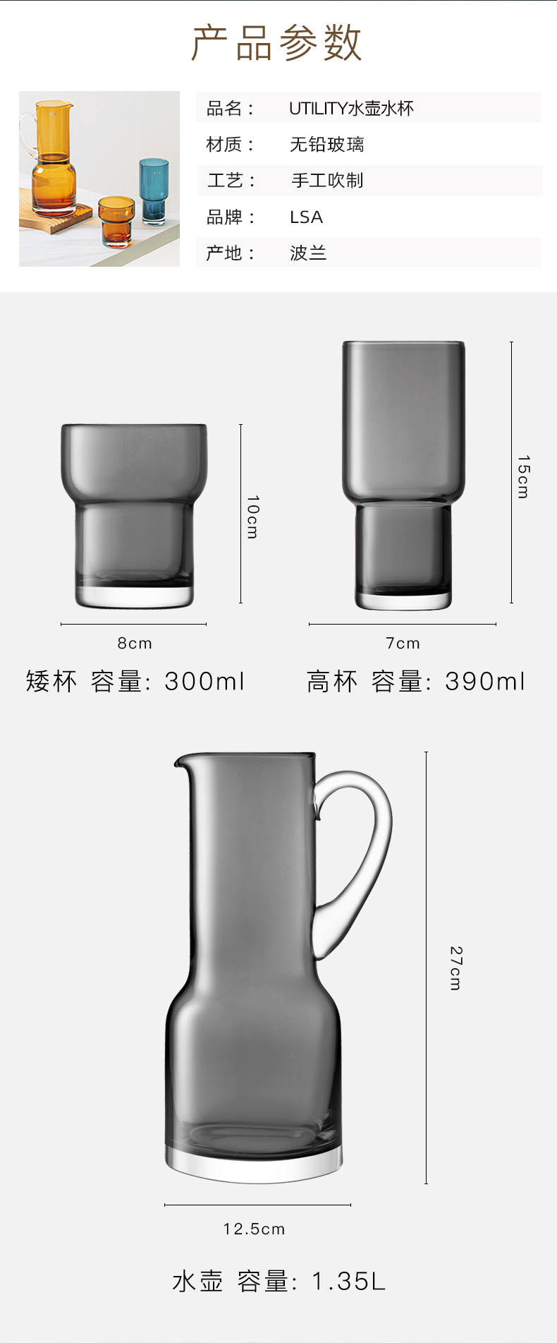 lsa水杯设计感小众手工简约大容量utility冷水壶高颜值玻璃杯