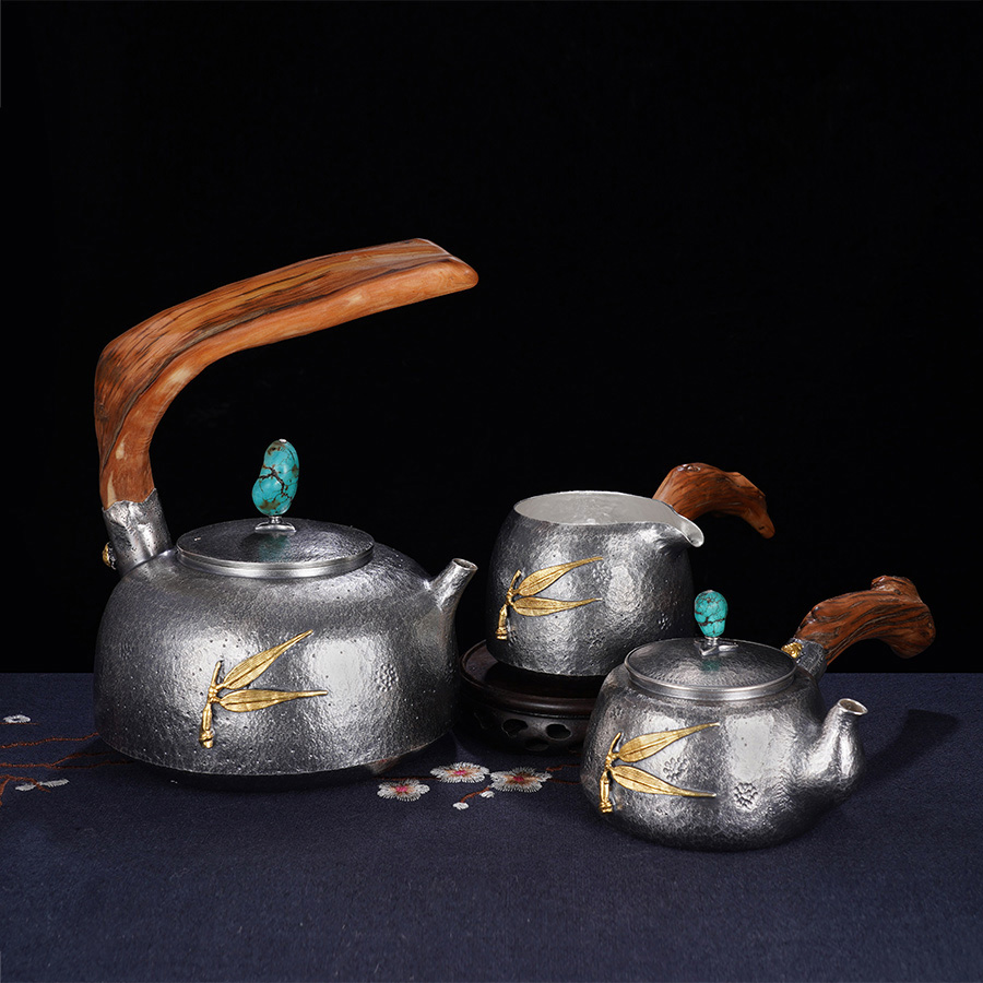 子佩集S999银+崖柏【竹香入梦】提梁壶小茶壶公道杯摆件套装【TG003】【TG005】【TG006】2403