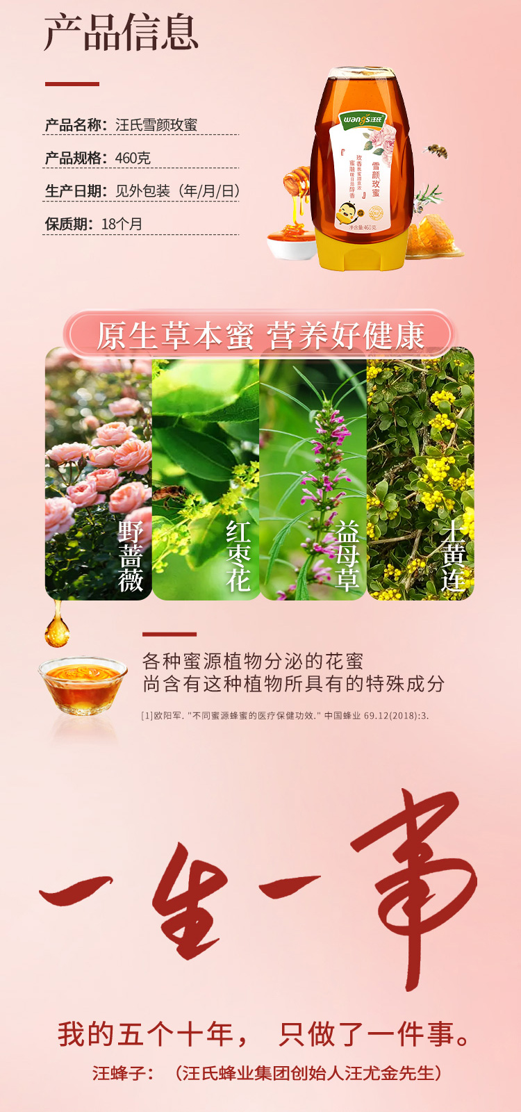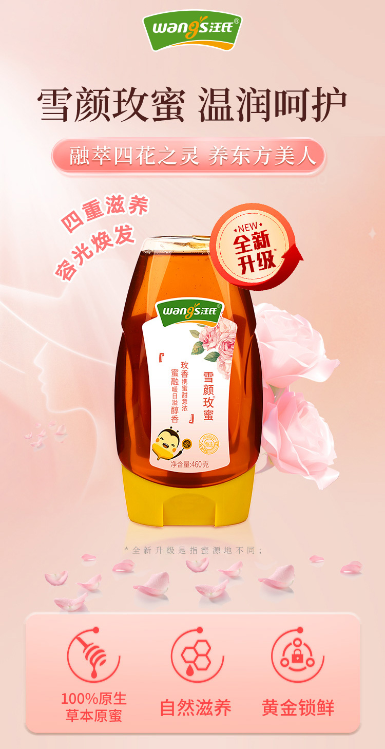 【央妈认证】汪氏雪颜玫蜜全新升级健康滋养甜蜜女性严选蜂蜜460g