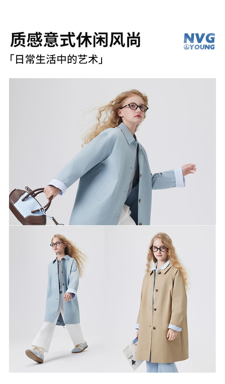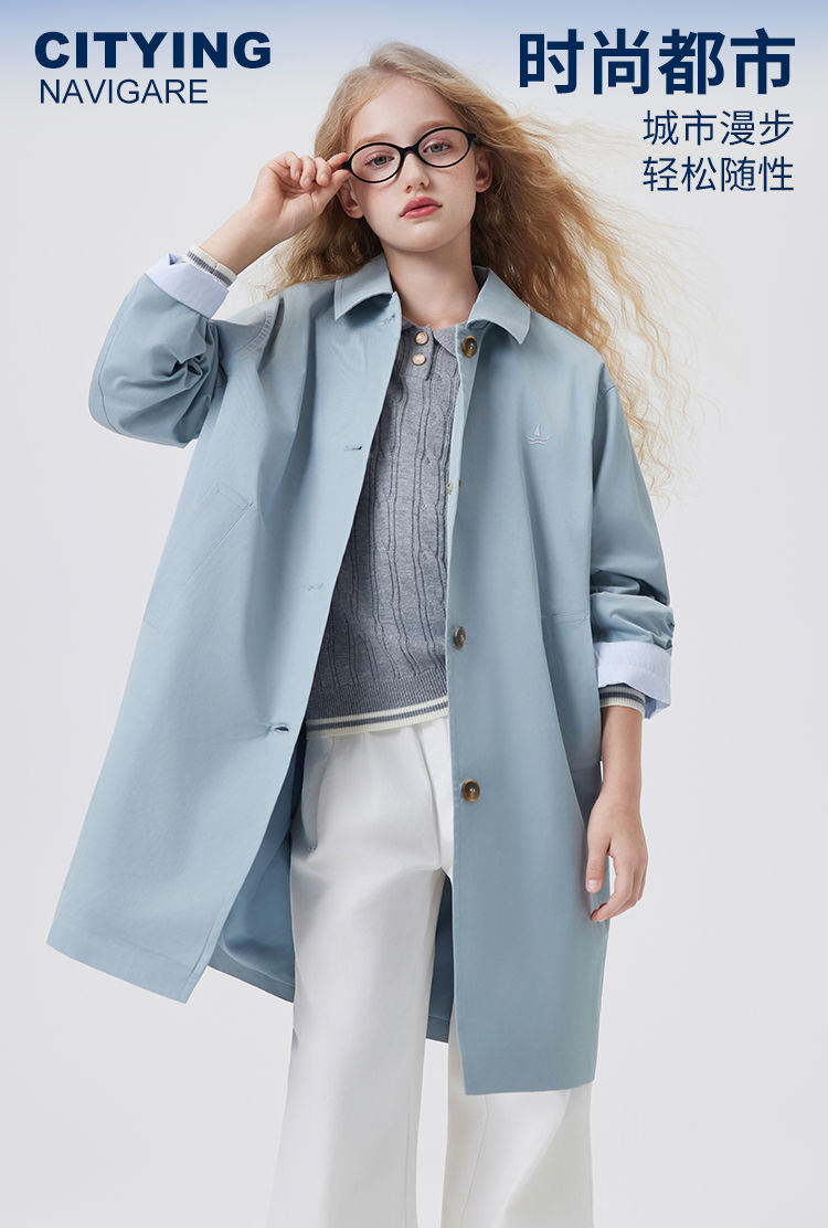 【纳维凯尔】【120-165】Navigare意大利小帆船女童中长款风衣外套