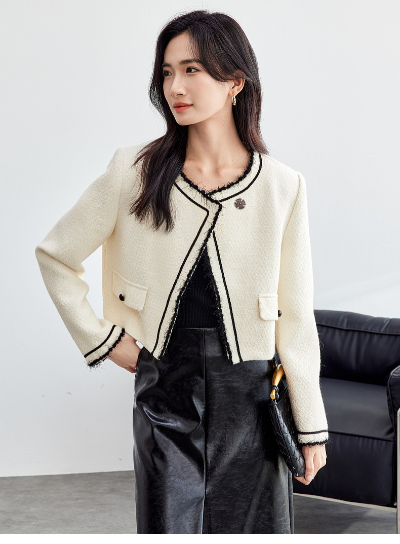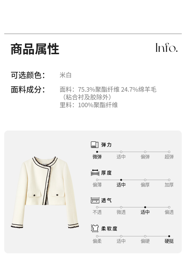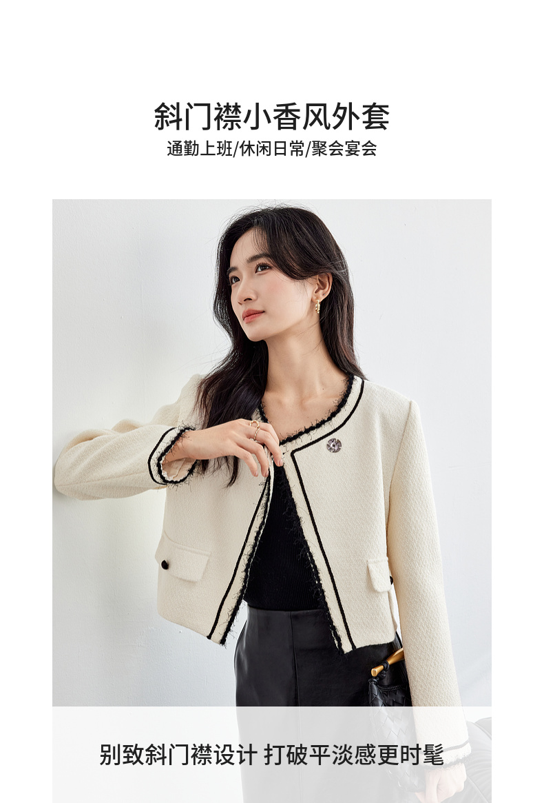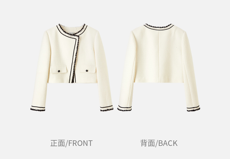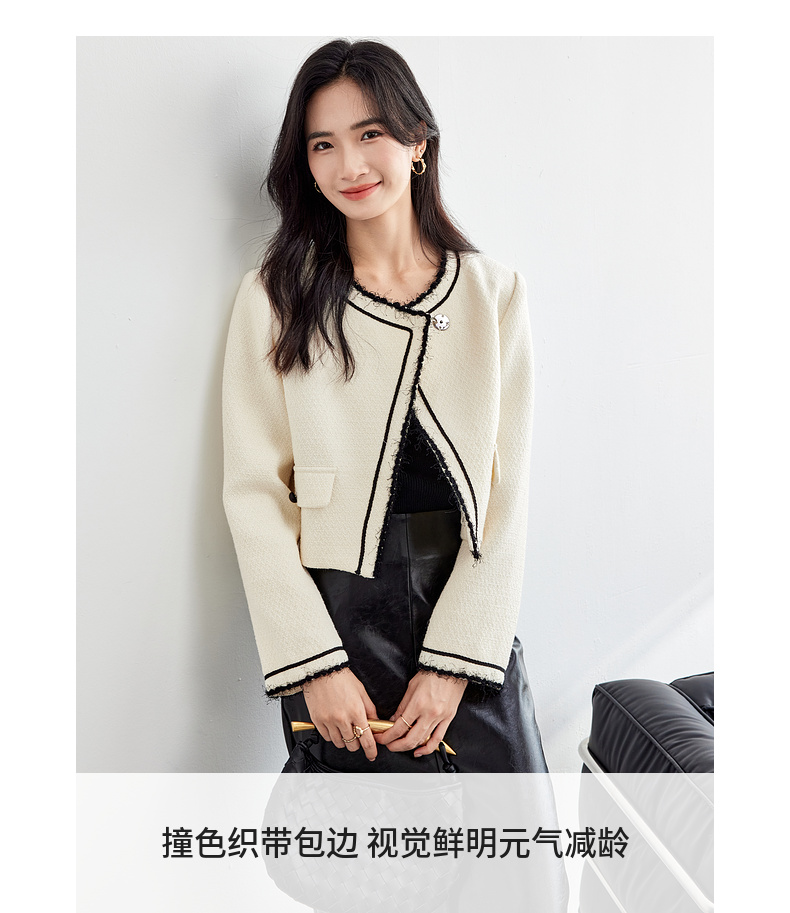 【内购】【都市通勤小香风外套】优雅圆领斜门襟撞色织带设计小香风外套-151W80084X