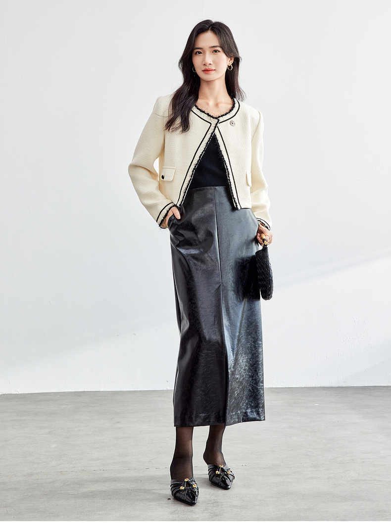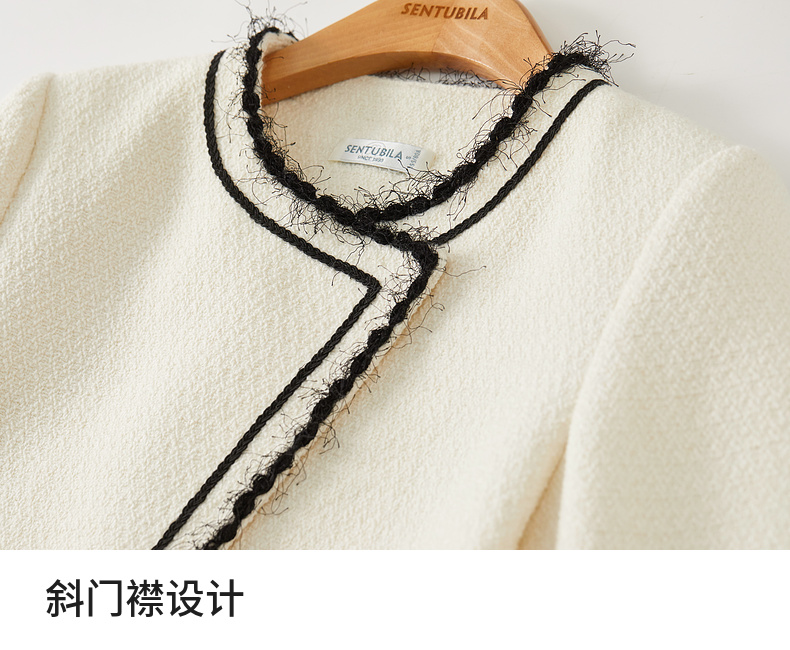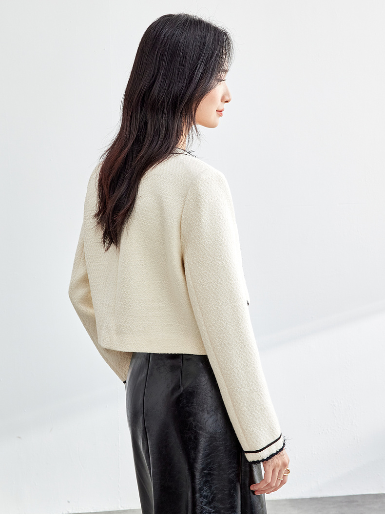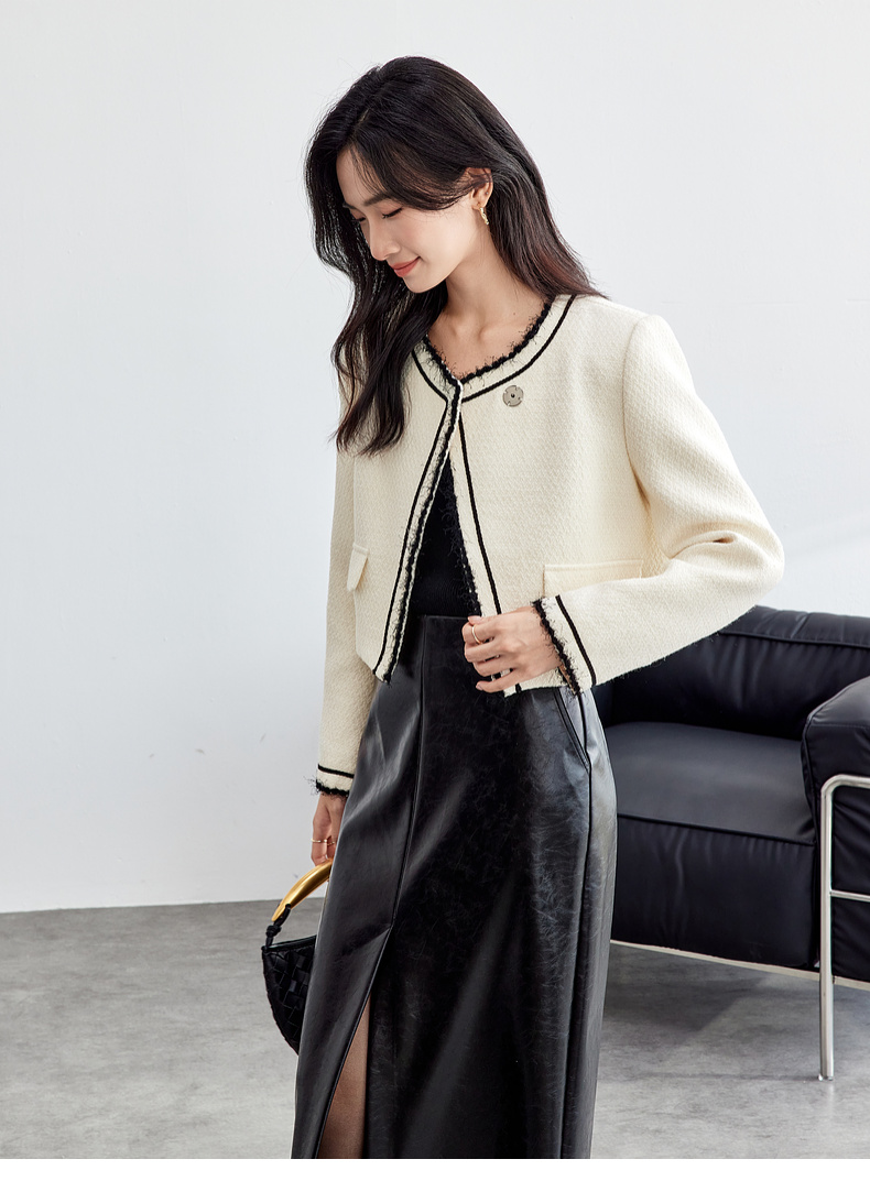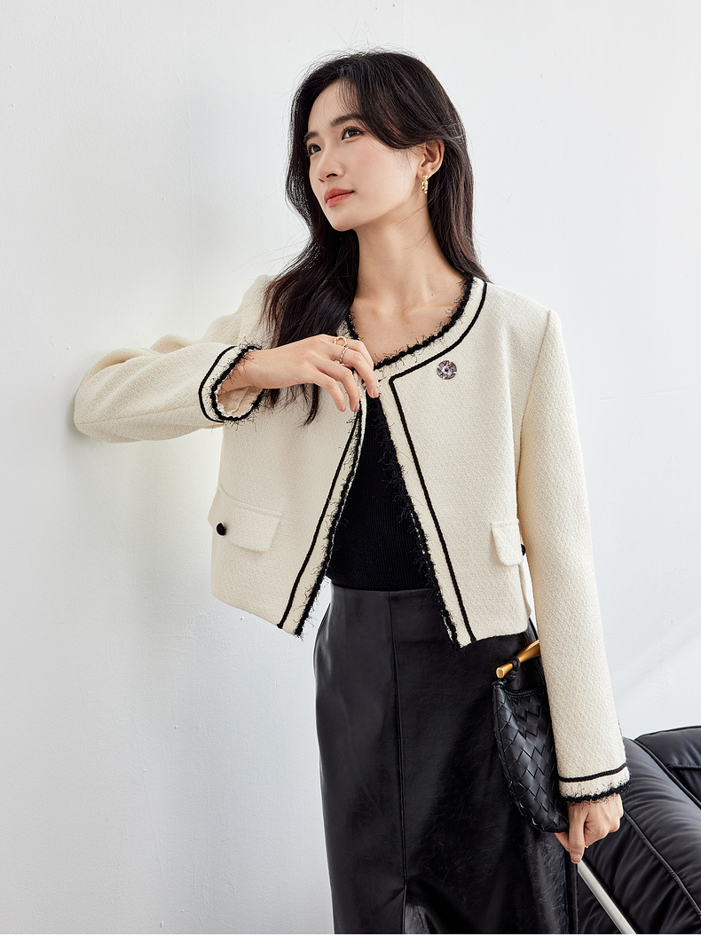 【内购】【都市通勤小香风外套】优雅圆领斜门襟撞色织带设计小香风外套-151W80084X