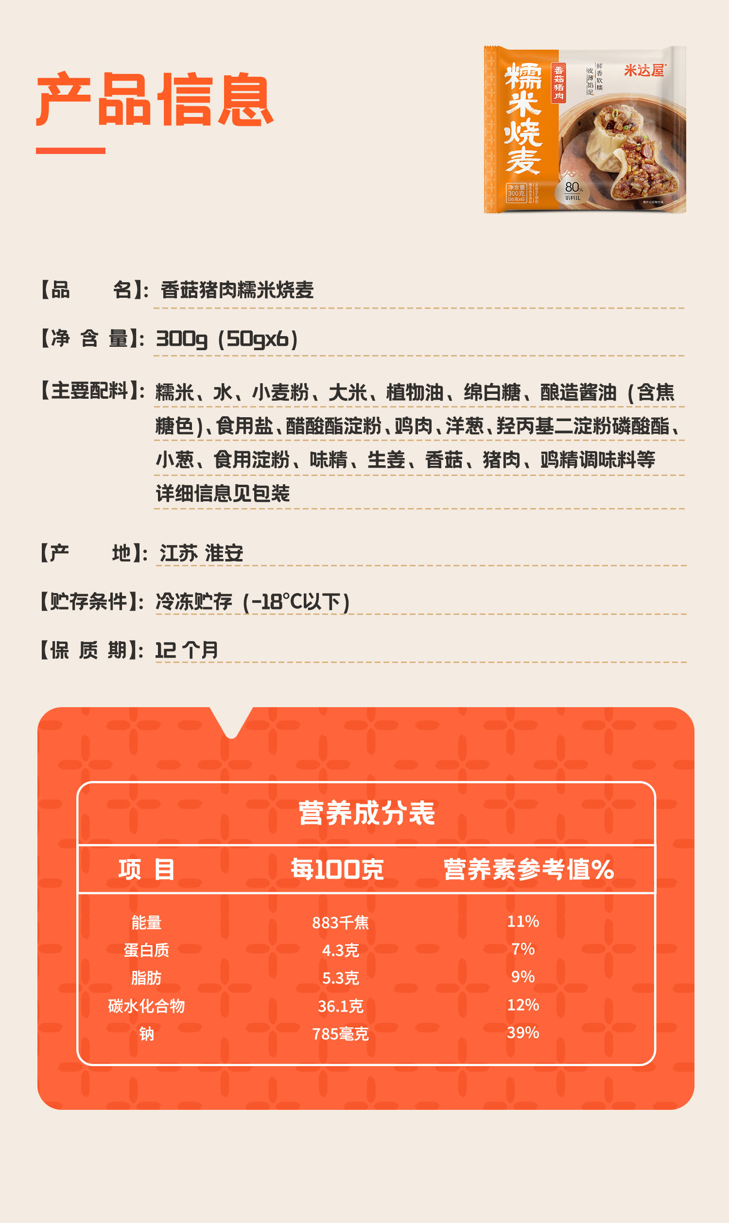 【到手2包】米达屋糯米烧麦(香菇猪肉)/1份(300g*2包,每包6个)生产日期:25年12月