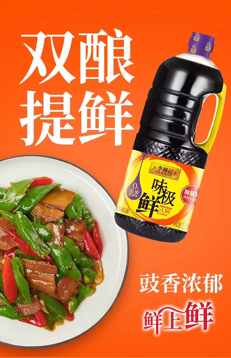 李锦记味极鲜(特级酱油)/1瓶(1.75L)赠李锦记特级薄盐生抽/1份(100ml*2瓶)生产日期:25年8月