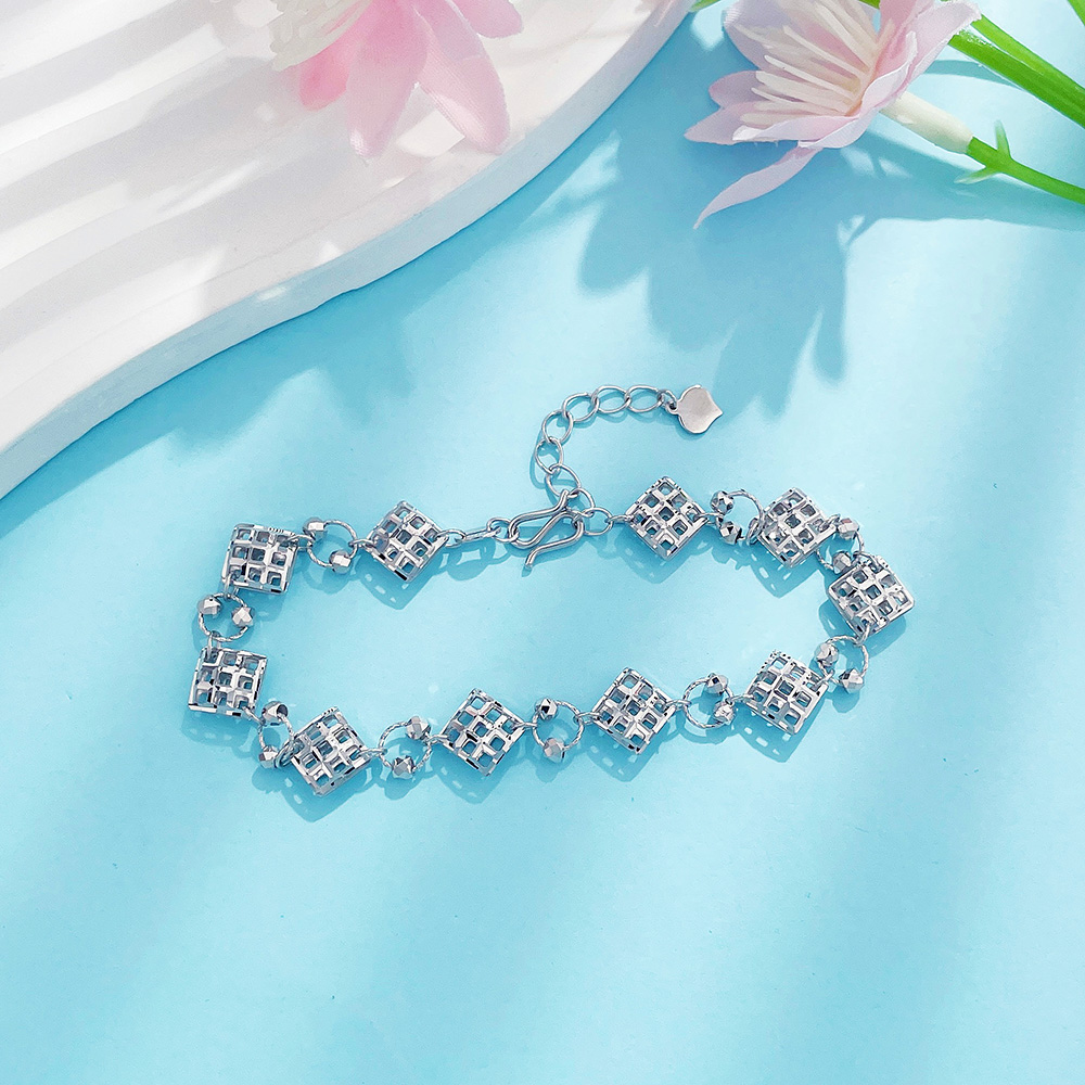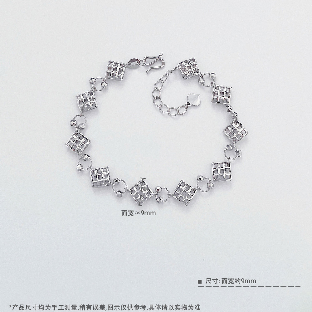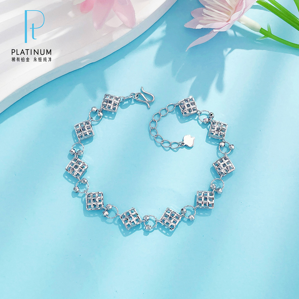 【限时8.8折】【线上铂金馆】PT950 【国际铂金协会 精品】铂金镂空调节极简几何九宫格菱形方牌手链(ACPTSL00054)预售产品下单后不退款不退货不换货不补差价)