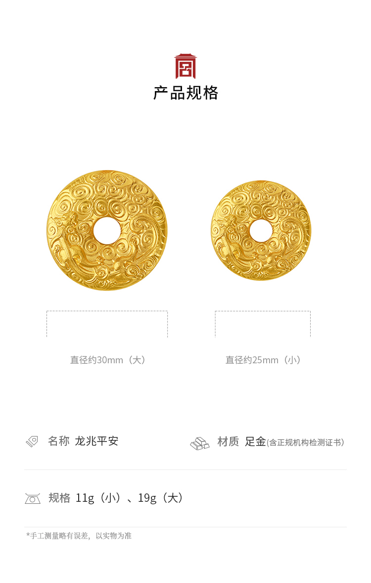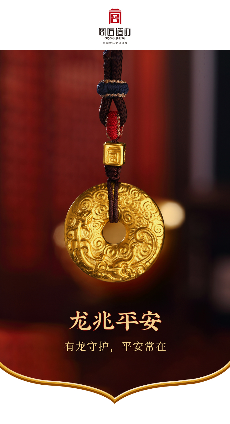 宫匠造办 十朝十美平安扣 宋·龙兆平安黄金吊坠