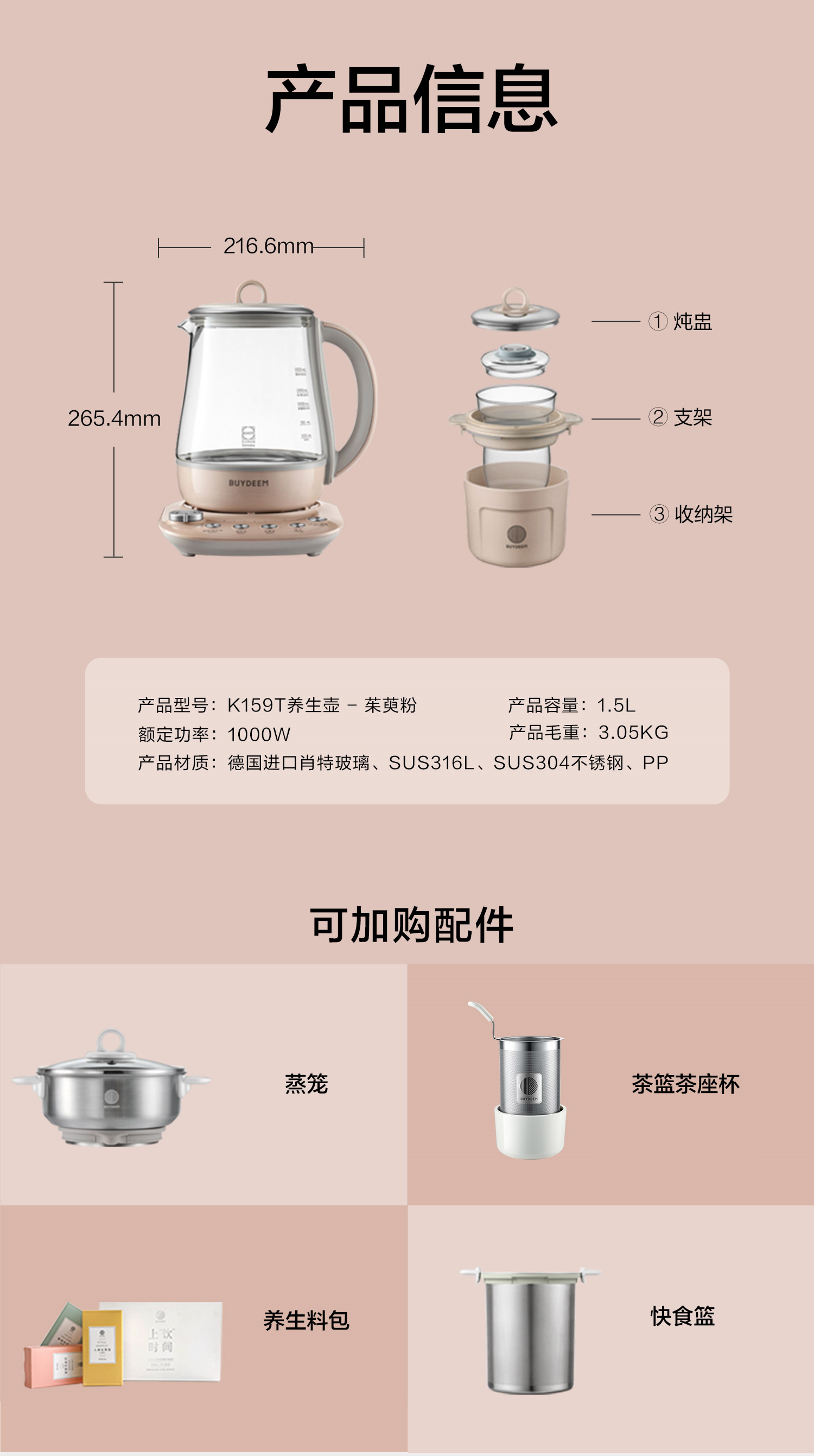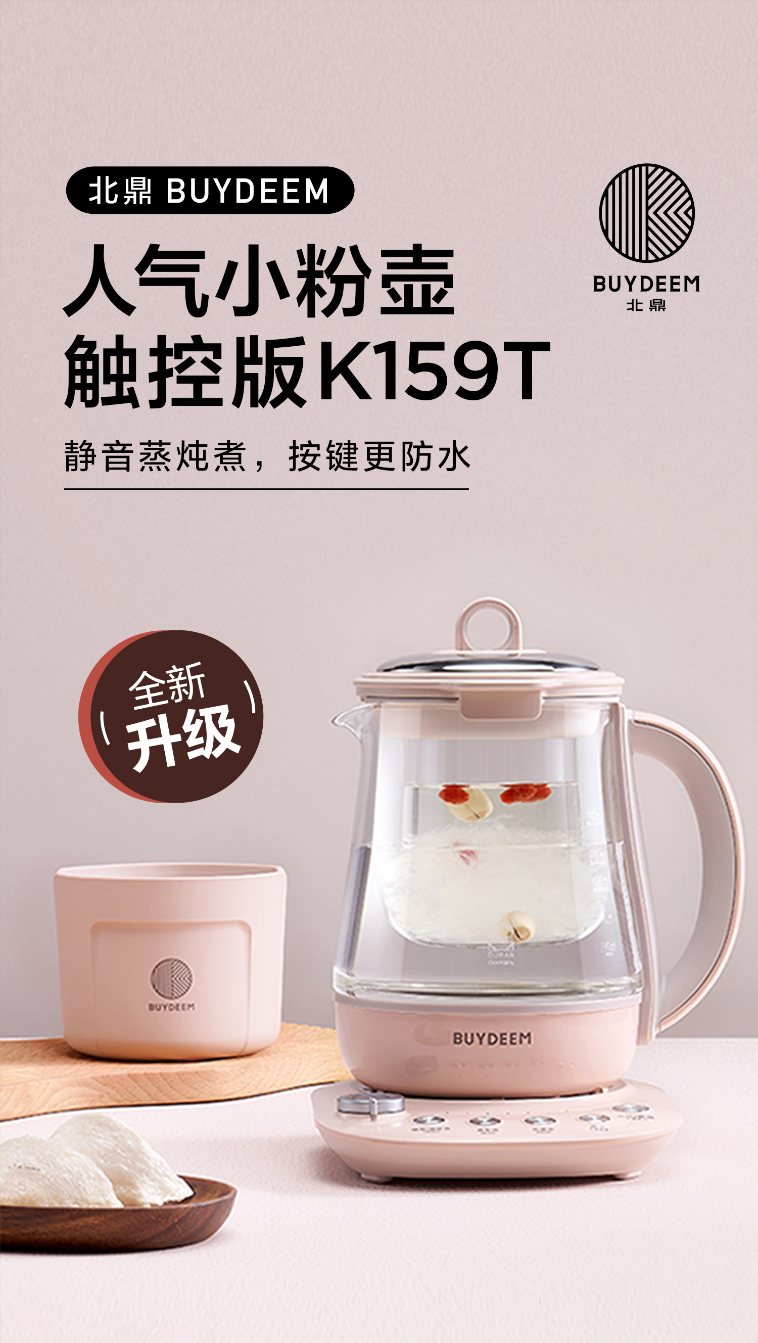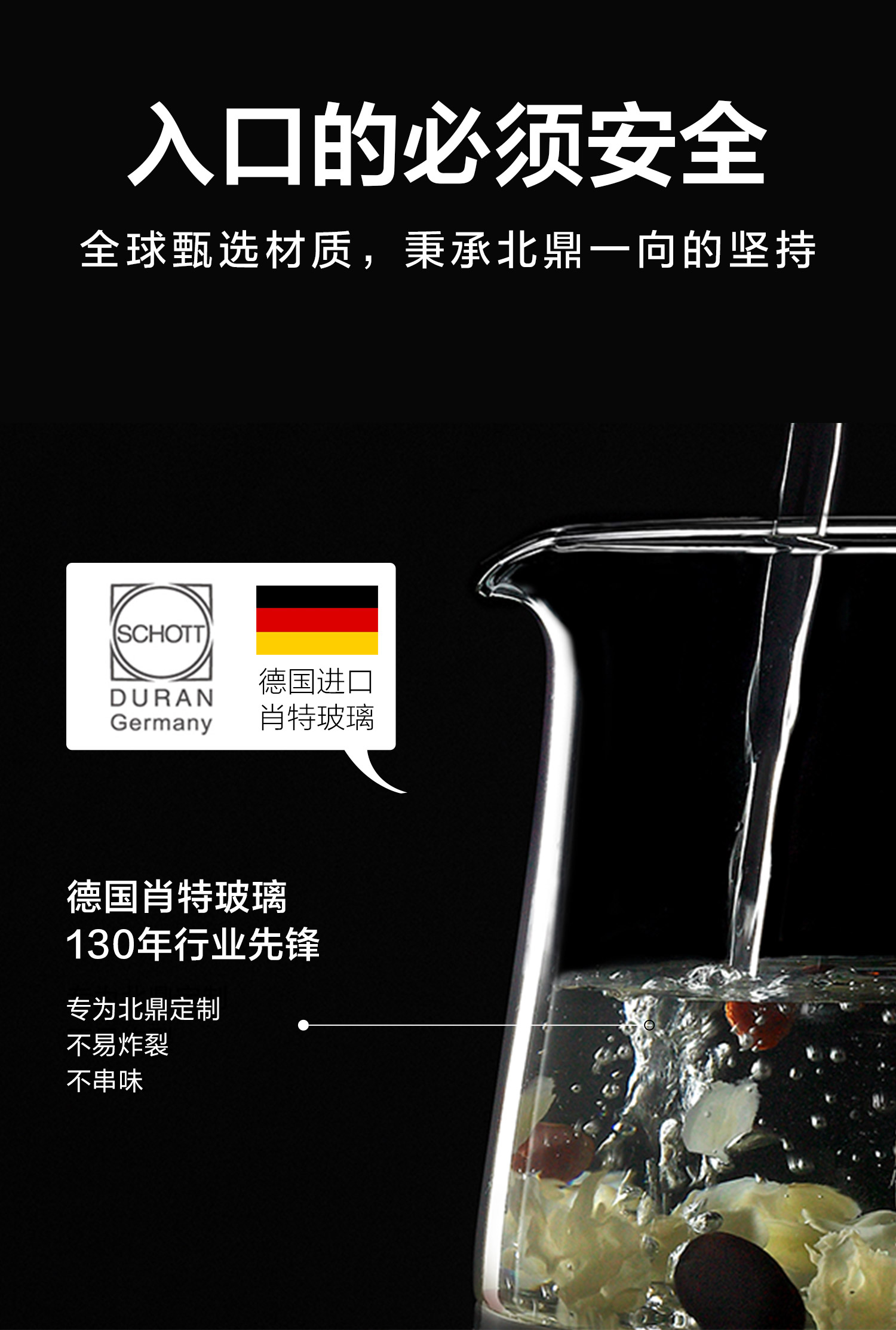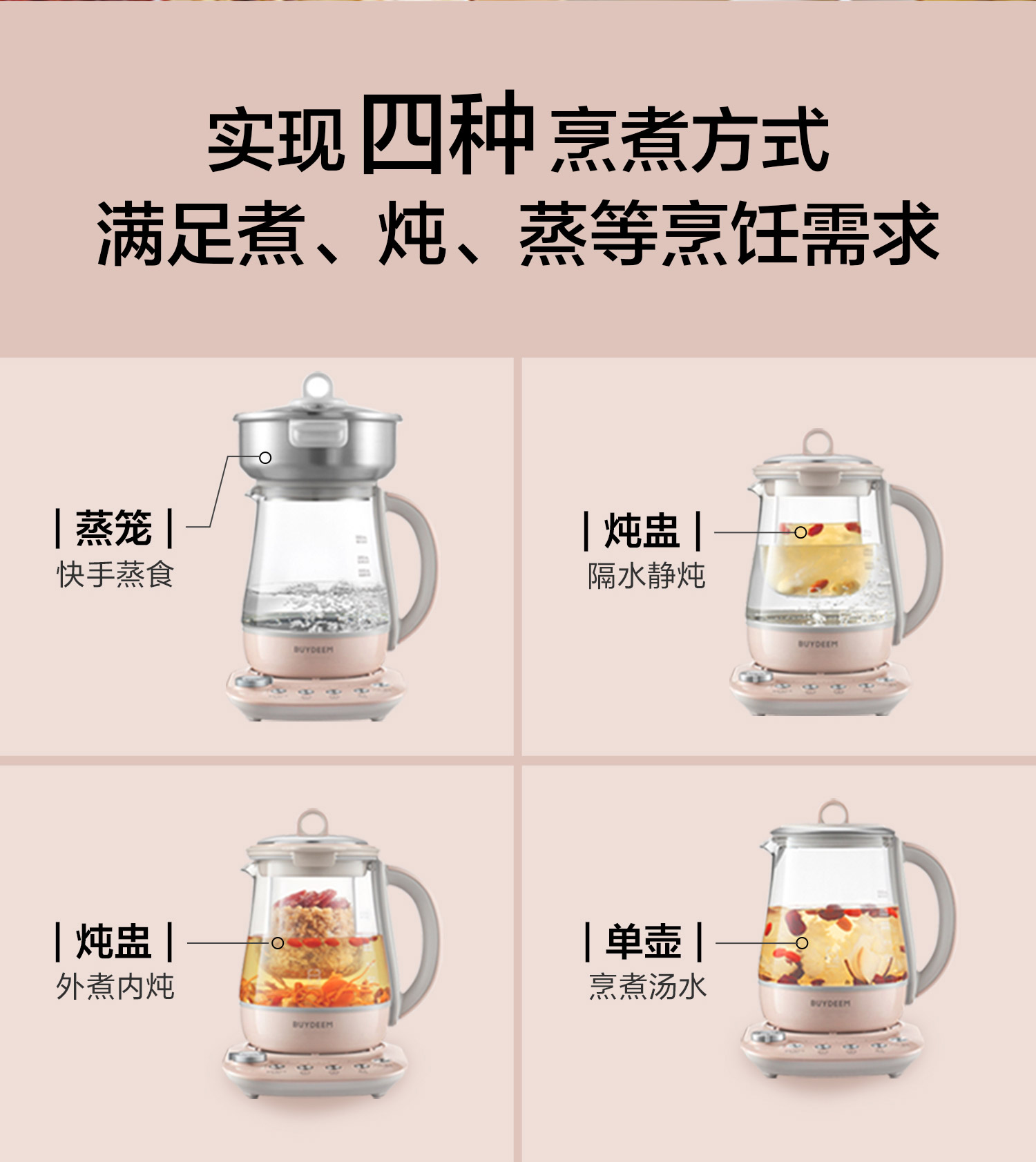 【北鼎】北鼎(Buydeem)养生壶煮茶器黑茶煮炖蒸燕窝炖盅玻璃花茶壶K159T