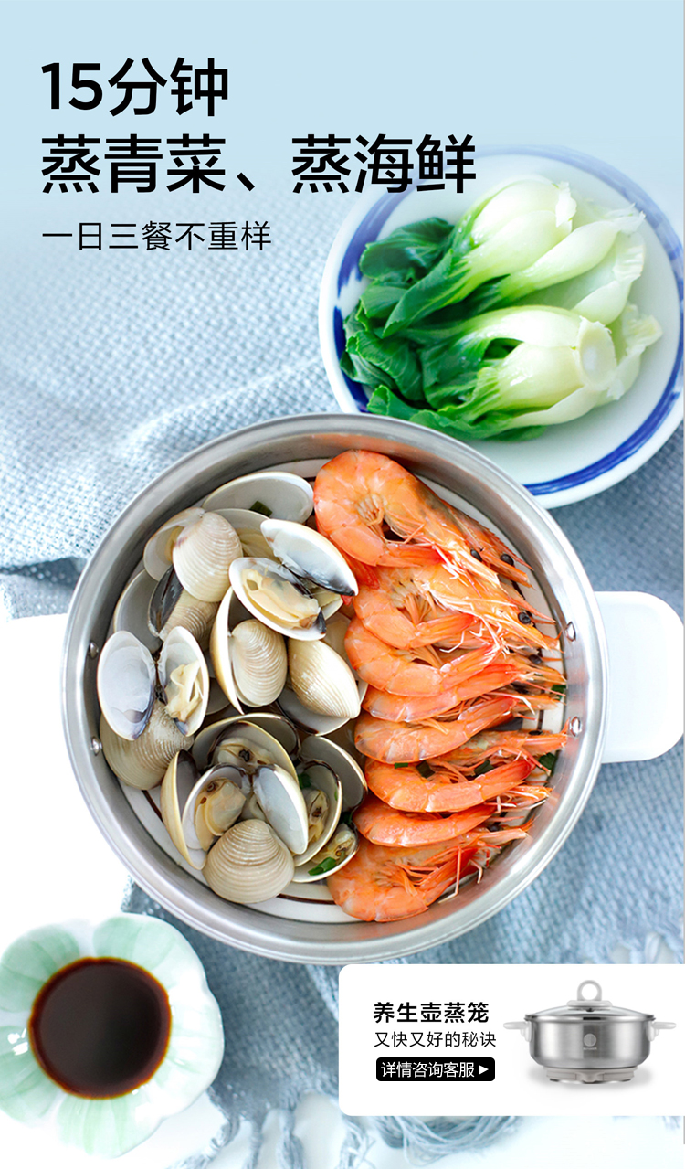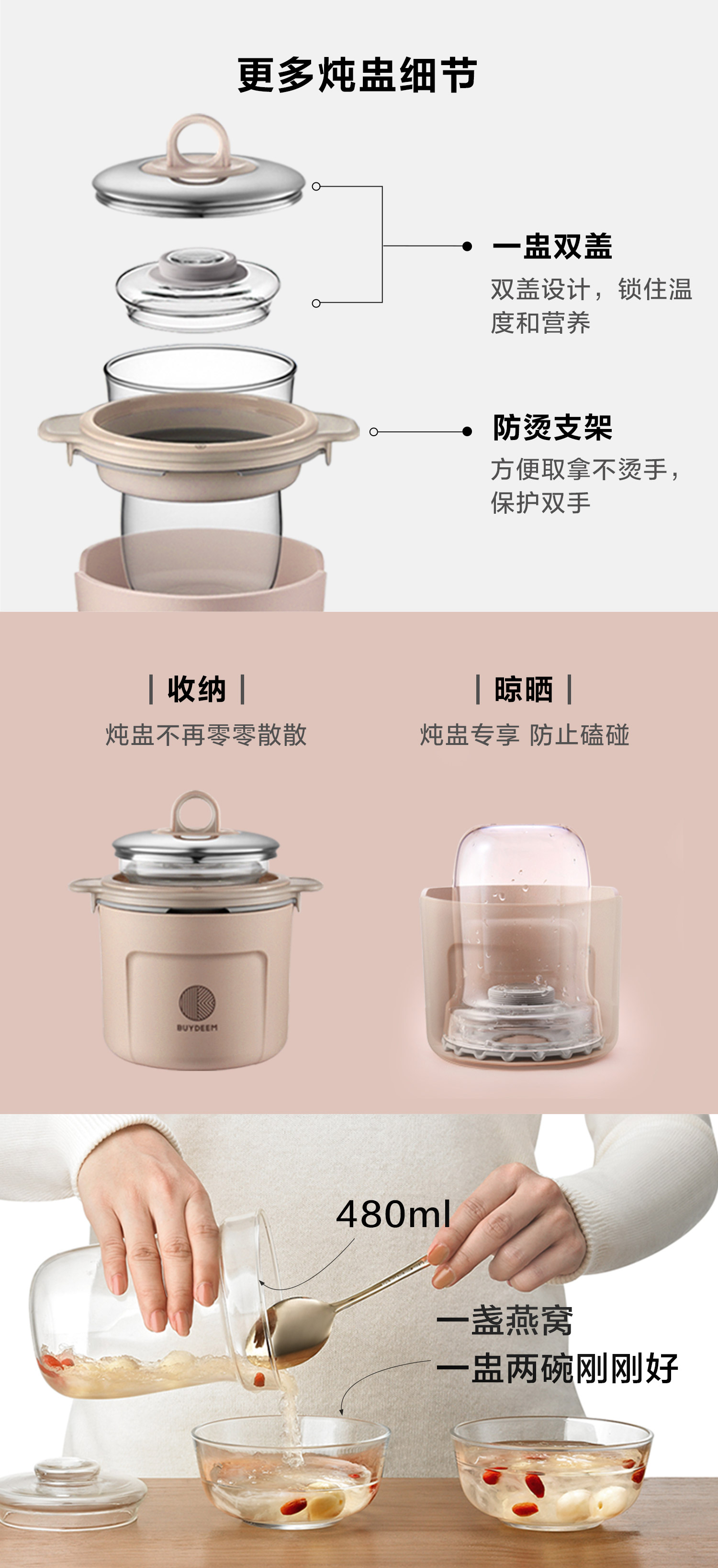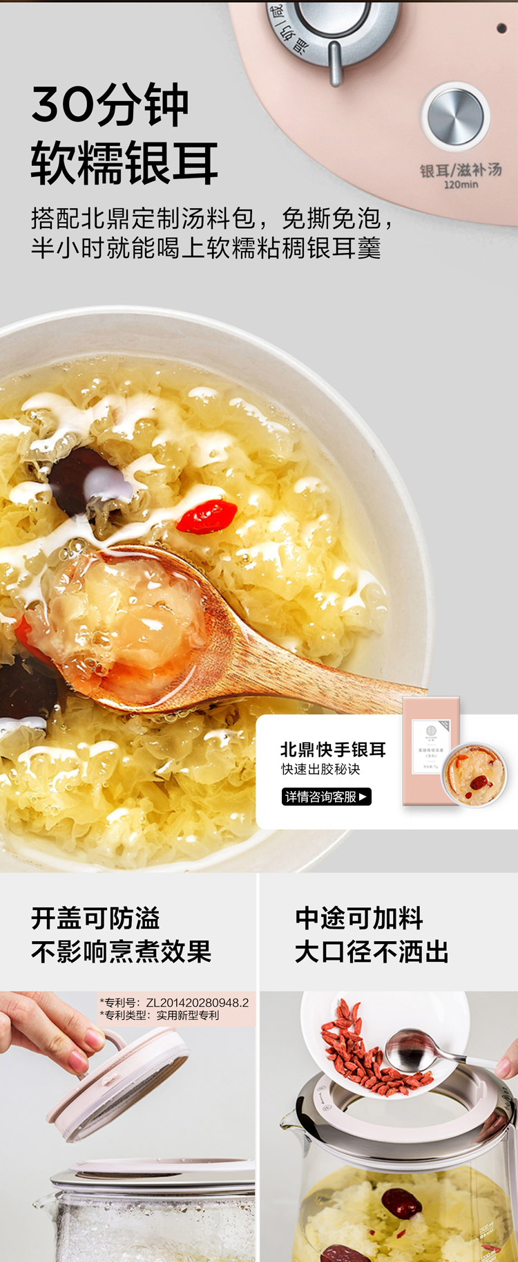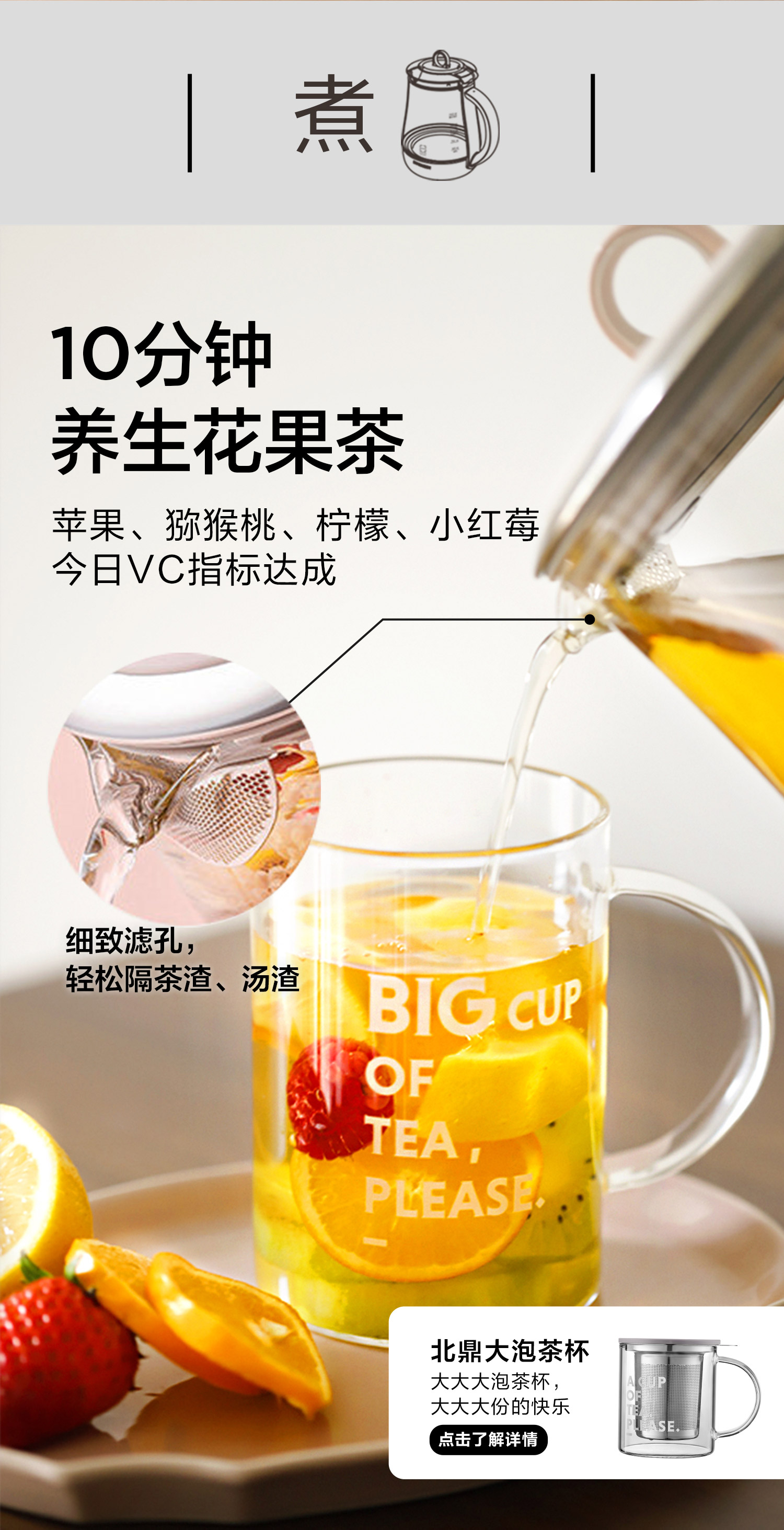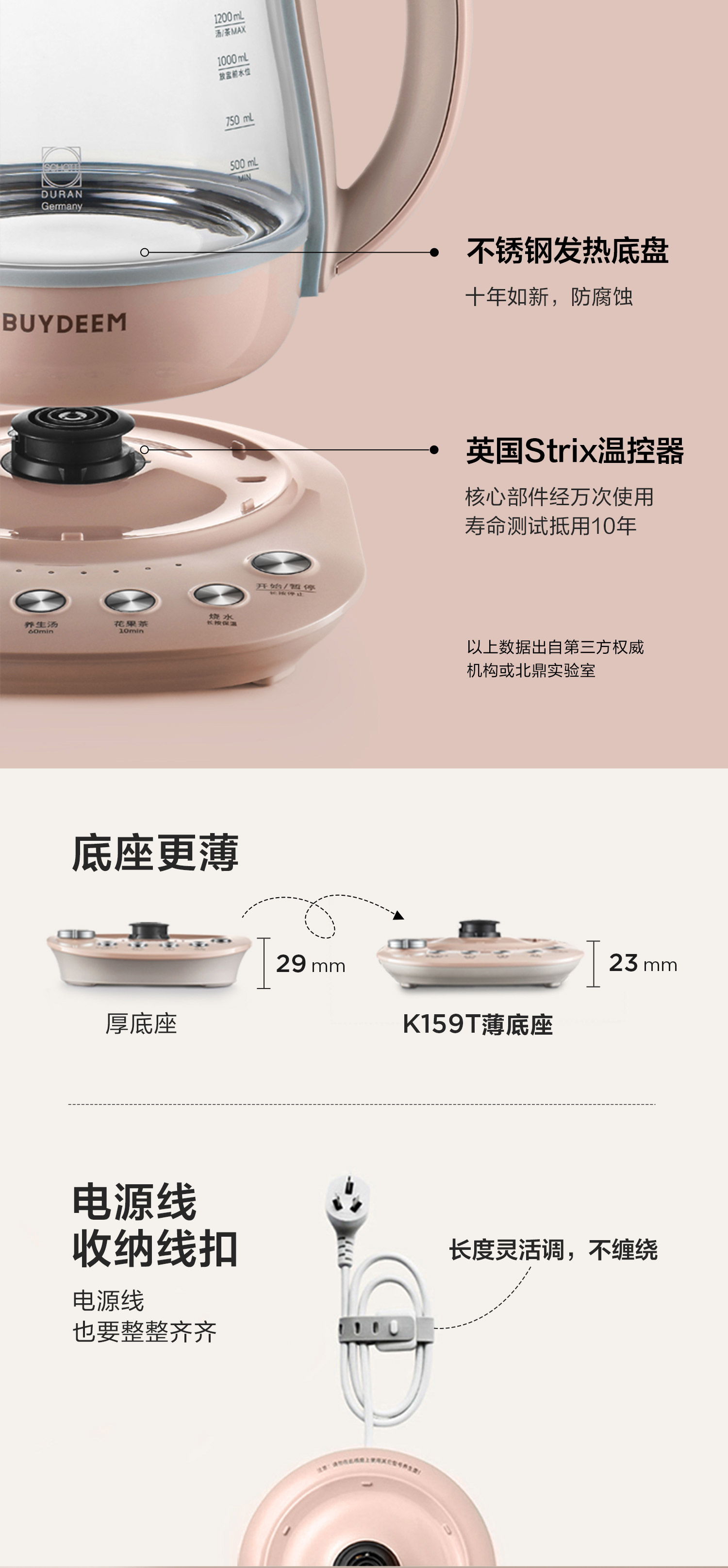 【北鼎】北鼎(Buydeem)养生壶煮茶器黑茶煮炖蒸燕窝炖盅玻璃花茶壶K159T