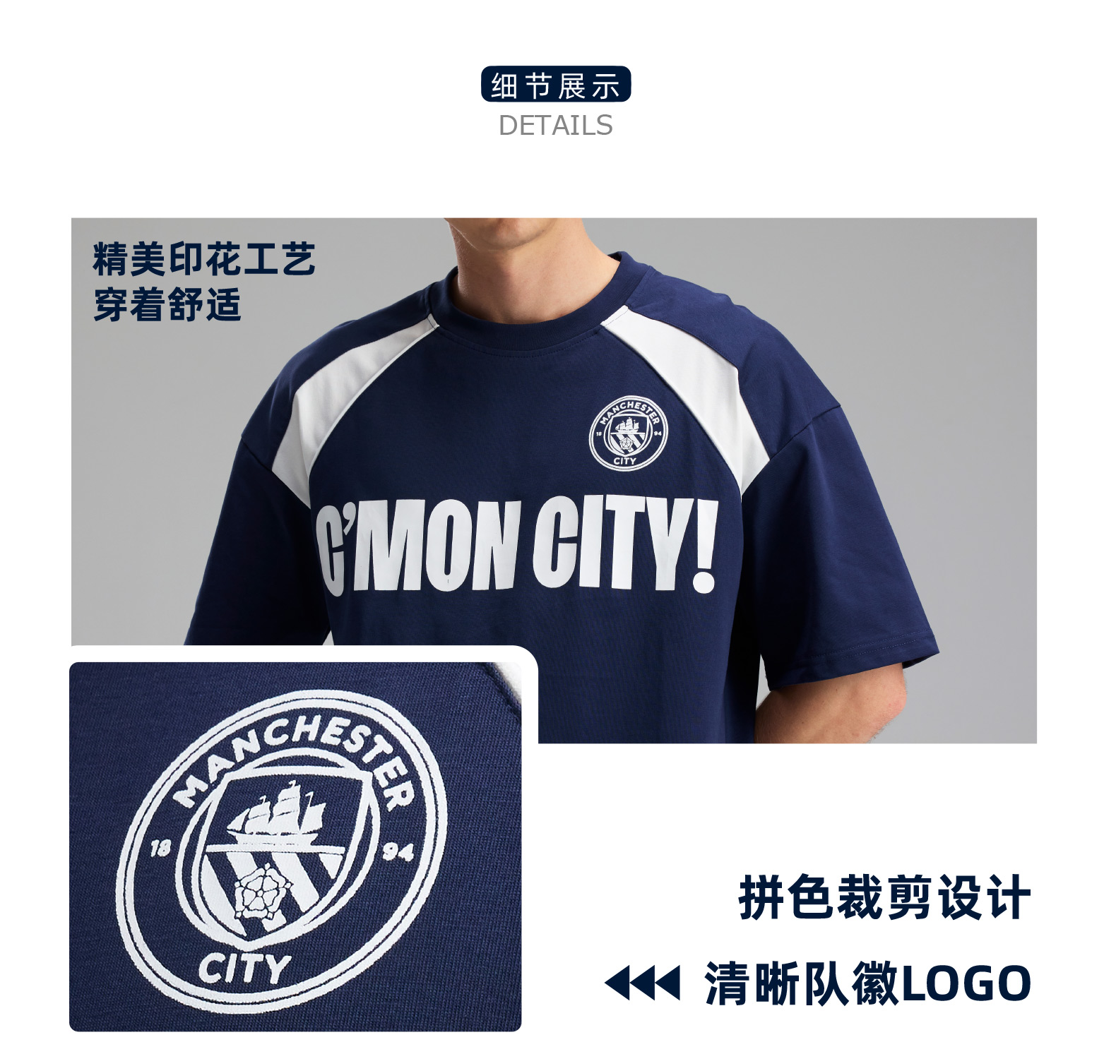 【官方正版】曼城俱乐部 | 蓝白拼色T恤夏季时尚潮流短袖