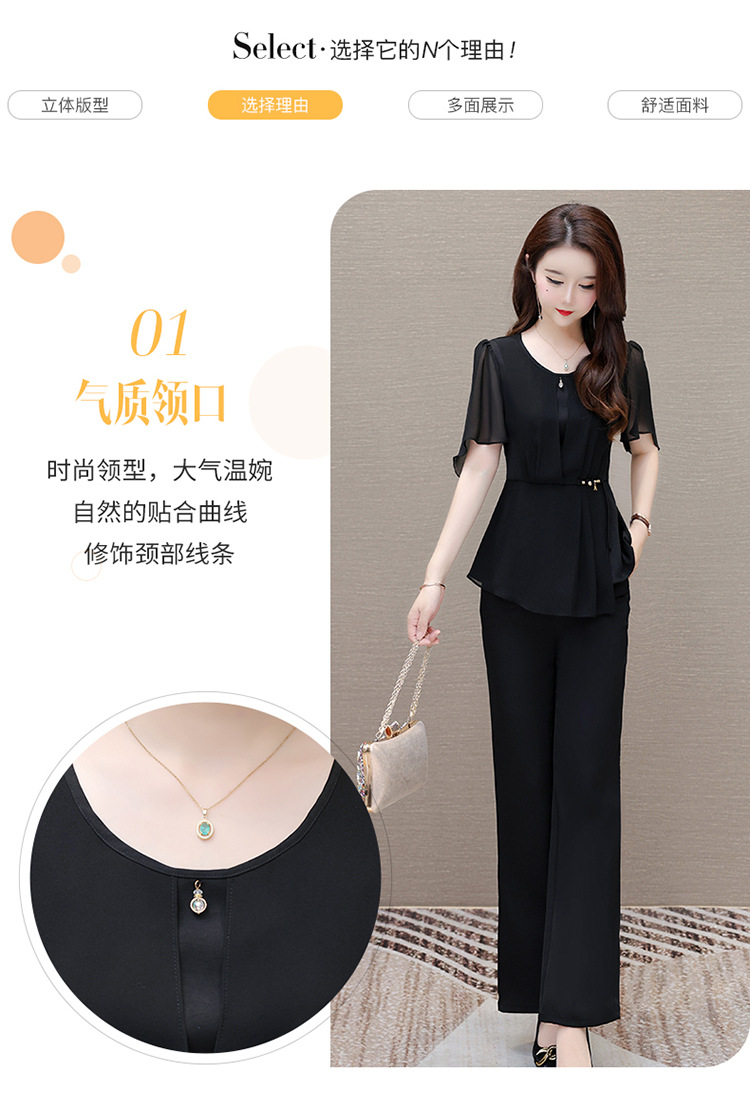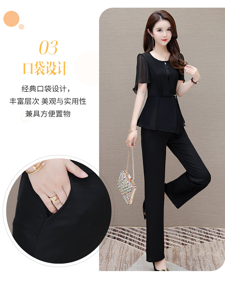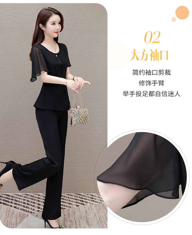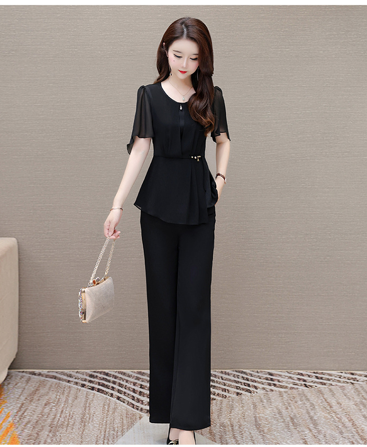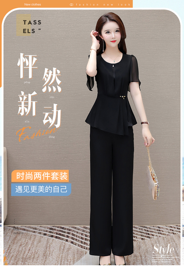 短袖时尚小衫+直筒阔腿长裤裤套装QYM-TYH-247273-Y
