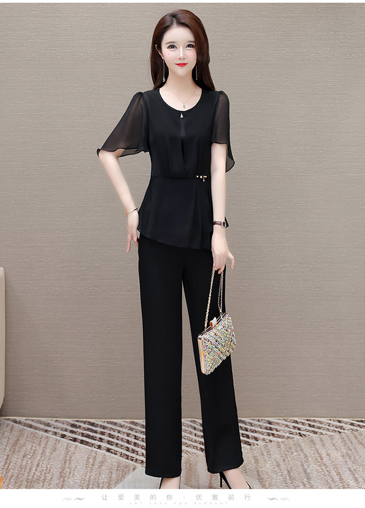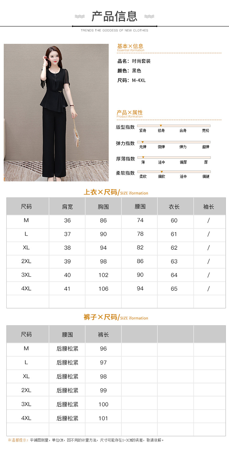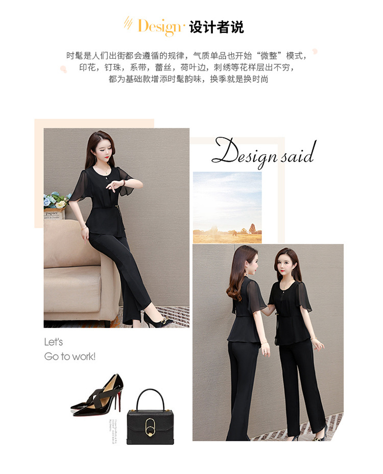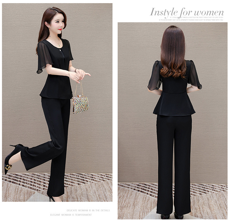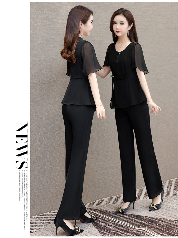 短袖时尚小衫+直筒阔腿长裤裤套装QYM-TYH-247273-Y