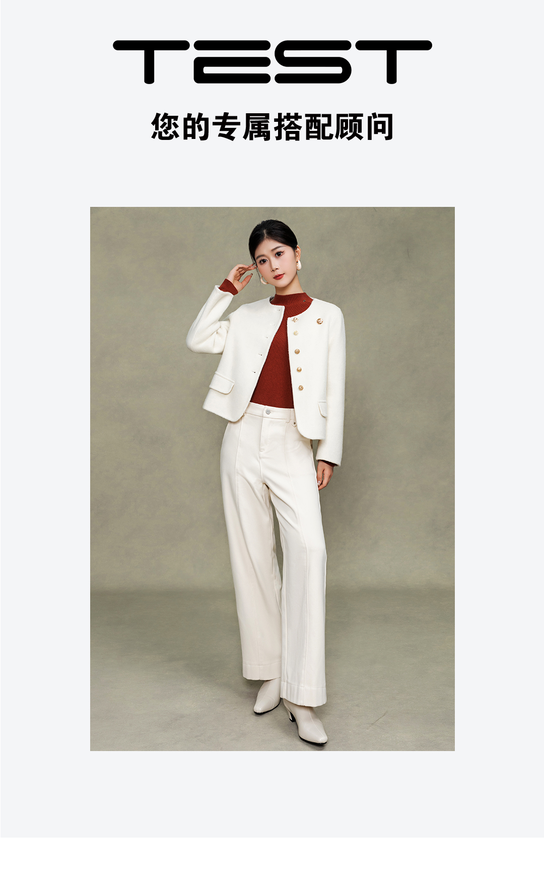 冬上新精致金扣超吸睛白色百搭显气质双面呢大衣 商品图2