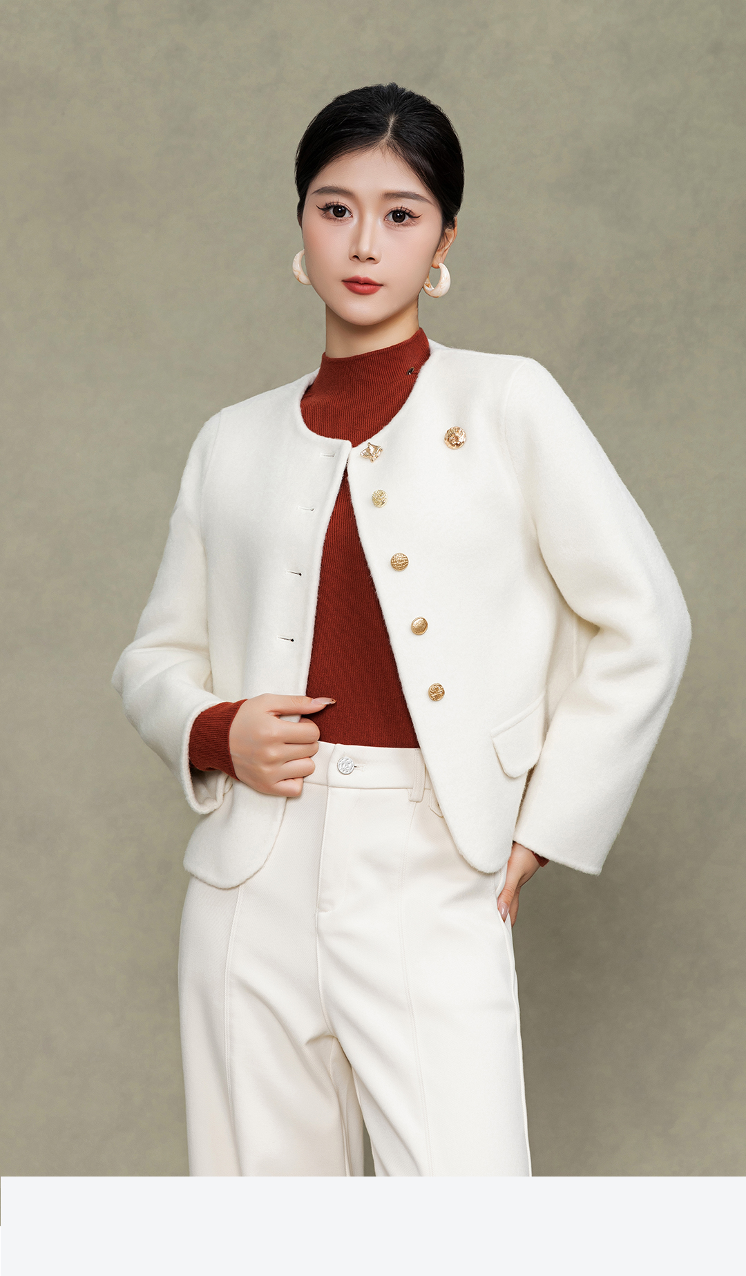冬上新精致金扣超吸睛白色百搭显气质双面呢大衣