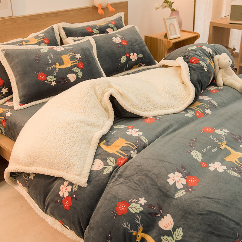 冬季珊瑚绒牛奶绒加厚毛绒绒床单羊羔绒四件套FYJ- YDGN