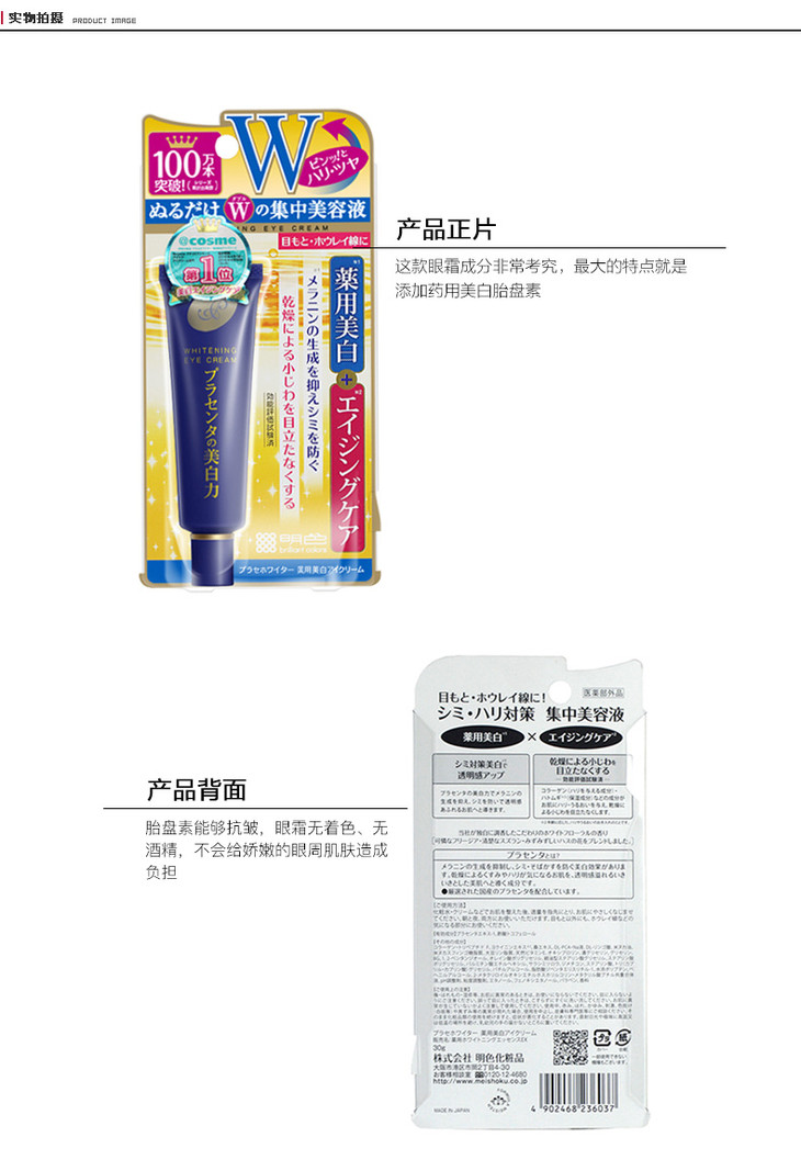 【香港直邮】日本cosme大赏 明色胎盘素眼霜 30g/支