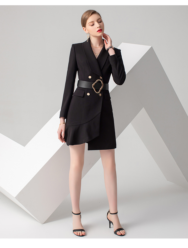 IWY/高级感黑色总裁西装套装女秋冬长袖设计感微喇裤职业工作服CP2518