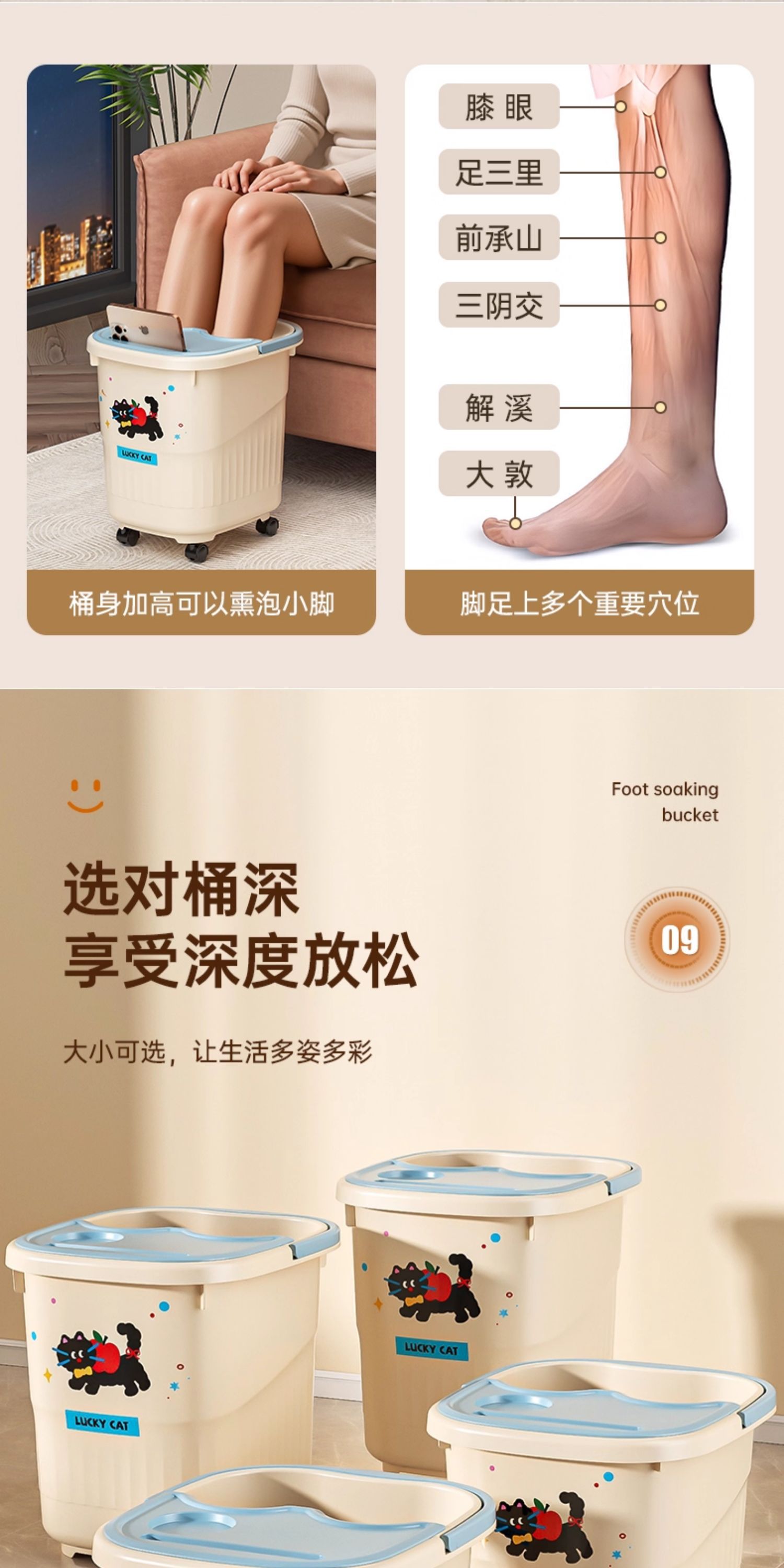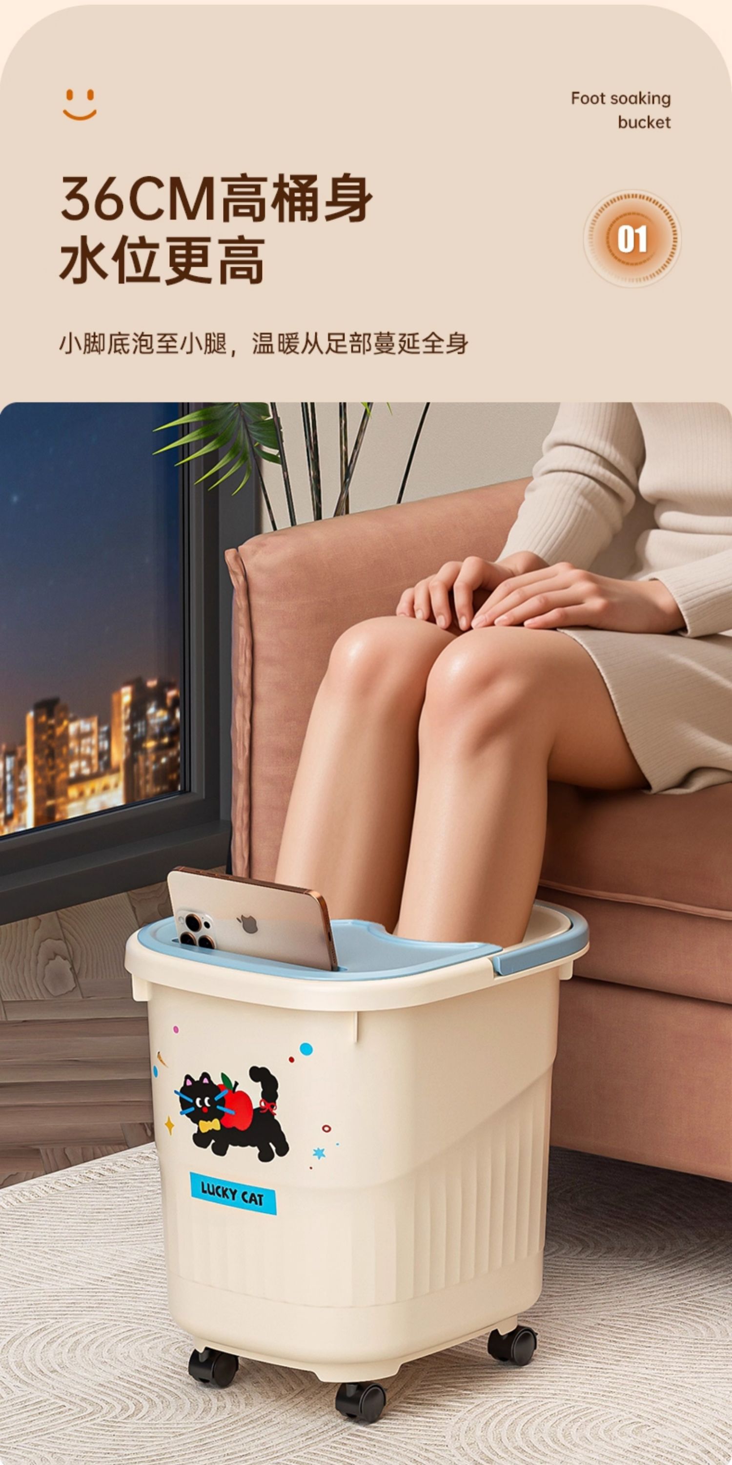 【秋冬可移动泡脚桶】家用高深桶过膝养生足浴盆 宿舍带盖过小腿熏蒸洗脚桶