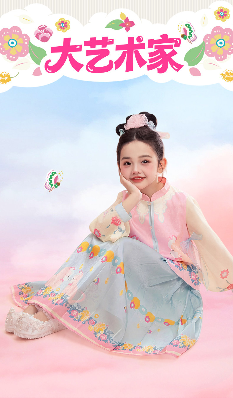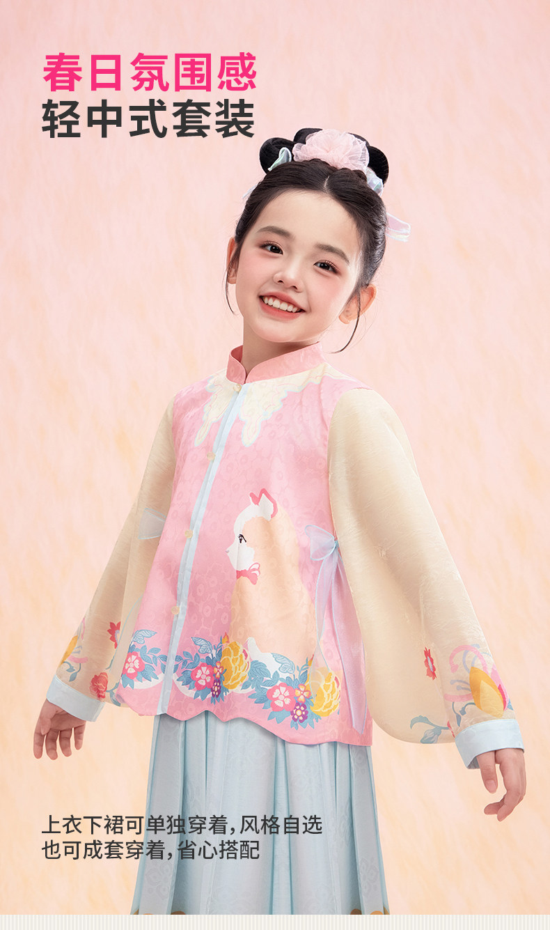 年衣童装儿童中式套装春季新款女童改良汉服两件套春意融融中式套装