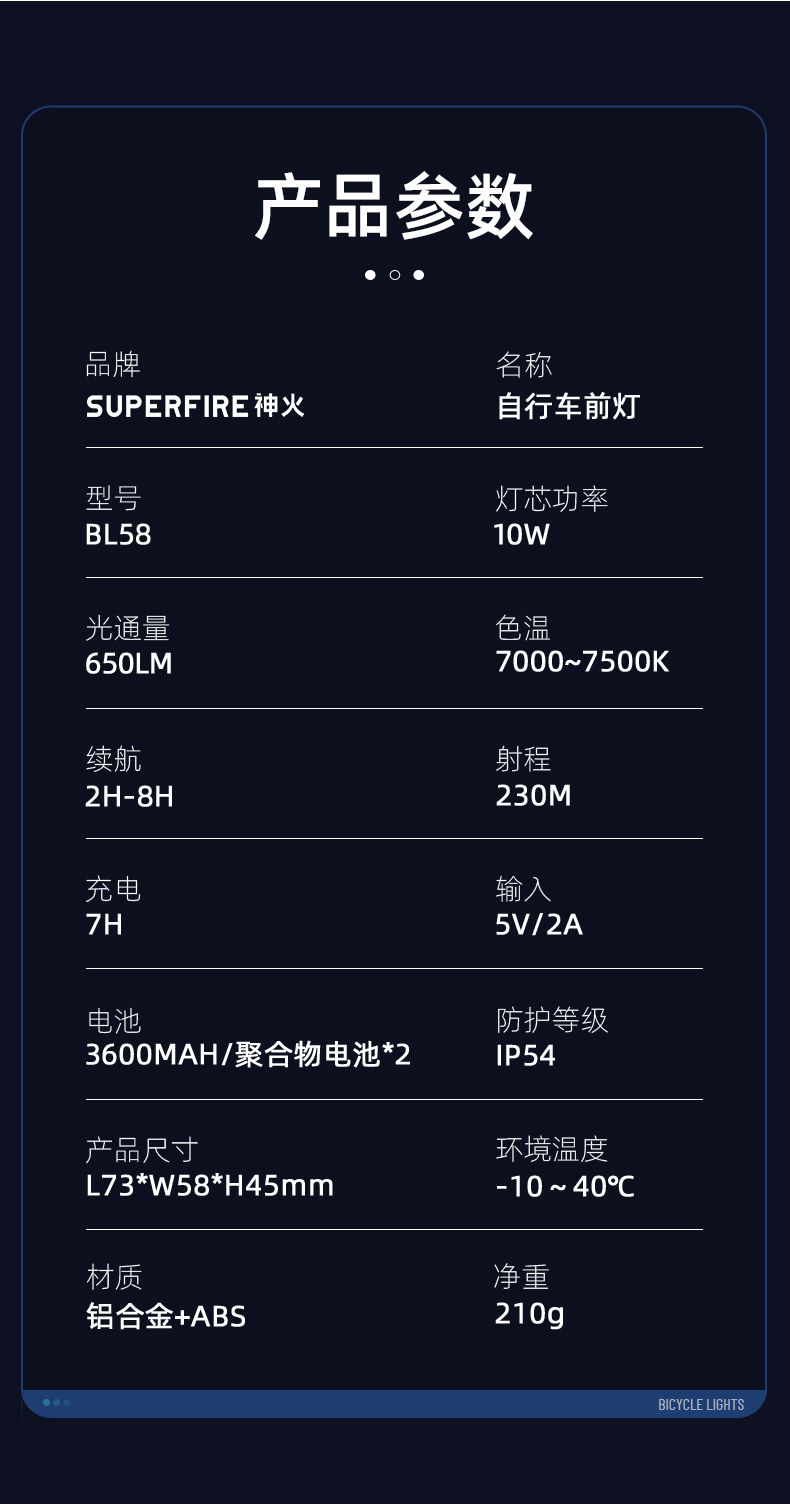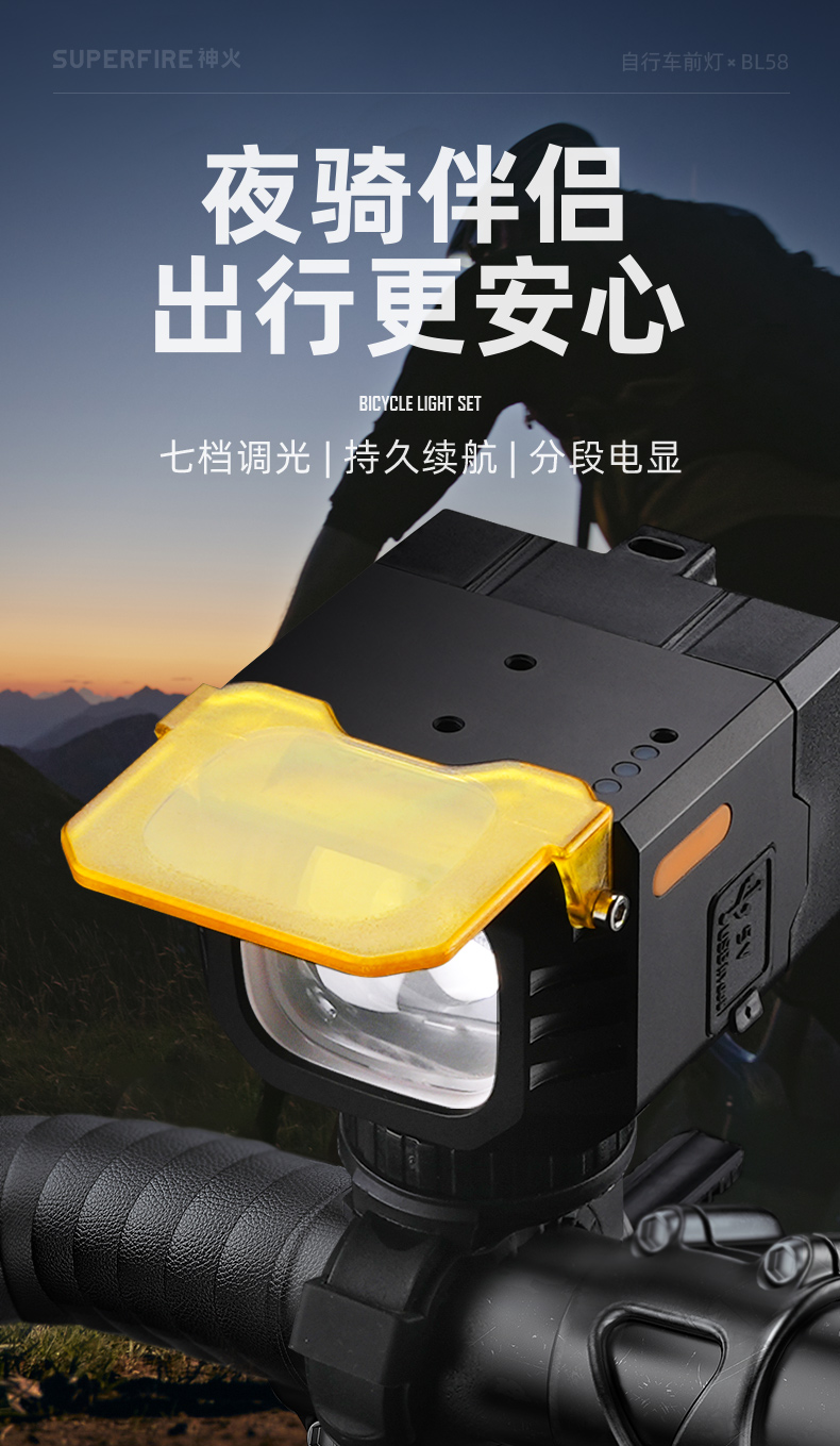 火自行车灯前灯吊装BL58爆亮长续航夜骑手电筒公路山地照明