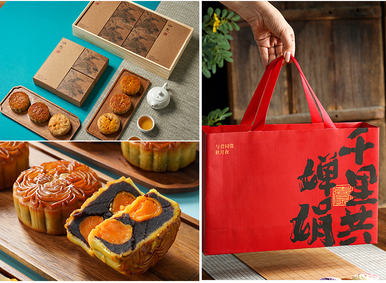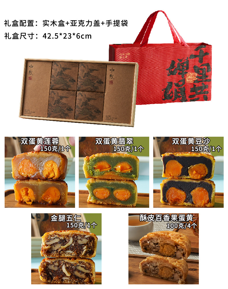 中秋送礼盒装2斤广式双黄莲蓉豆沙传统老式手工五仁酥皮月饼批发