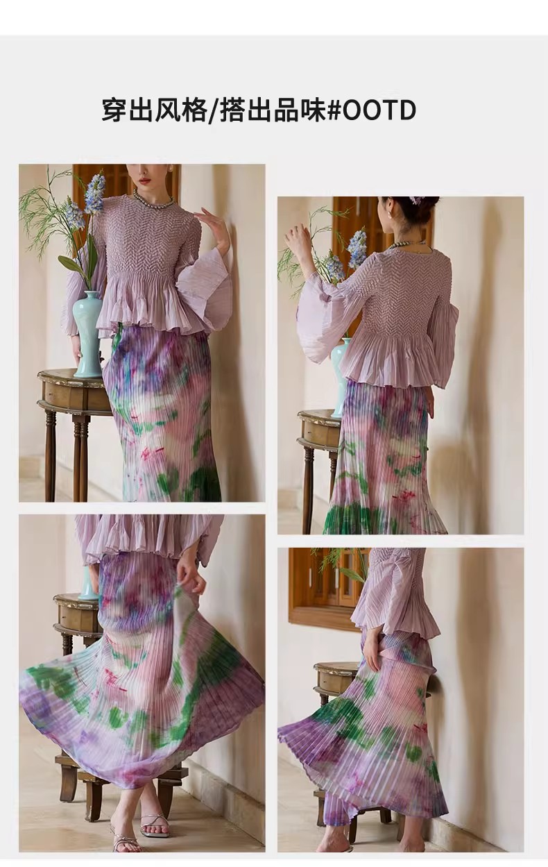 【门店同款】ENJOY夏季风褶衣水墨画鱼尾半裙 162264818