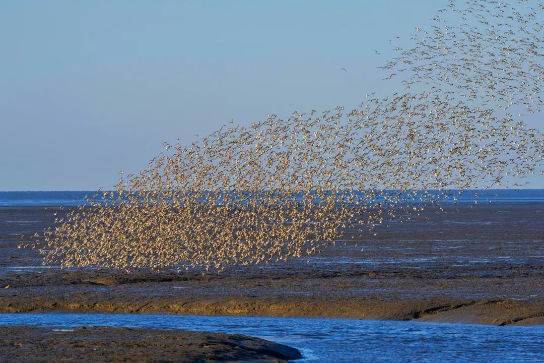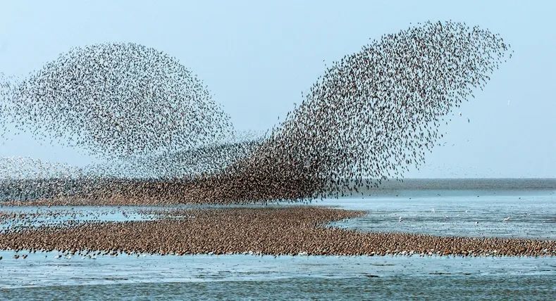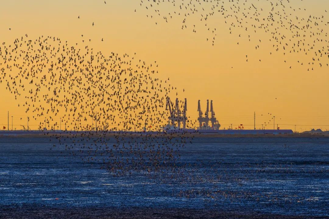 每年春末,冰雪消融,春回大地,丹东鸭绿江口湿地都有数以万计的候鸟从遥远的南方飞来。黑翅长脚鹬、砺鹬、滨鹬、环颈鸻、金眶鸻、翻石鹬等鸻鹬类涉禽的前锋队伍,还有大天鹅和翘鼻麻鸭等候鸟飞抵,掀起阵阵鸟浪。