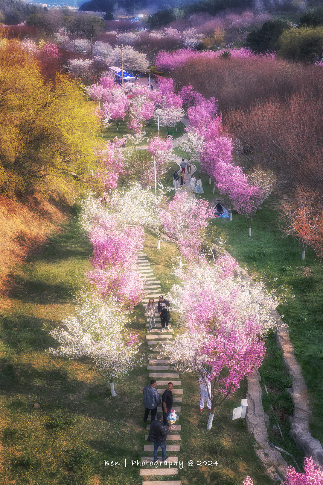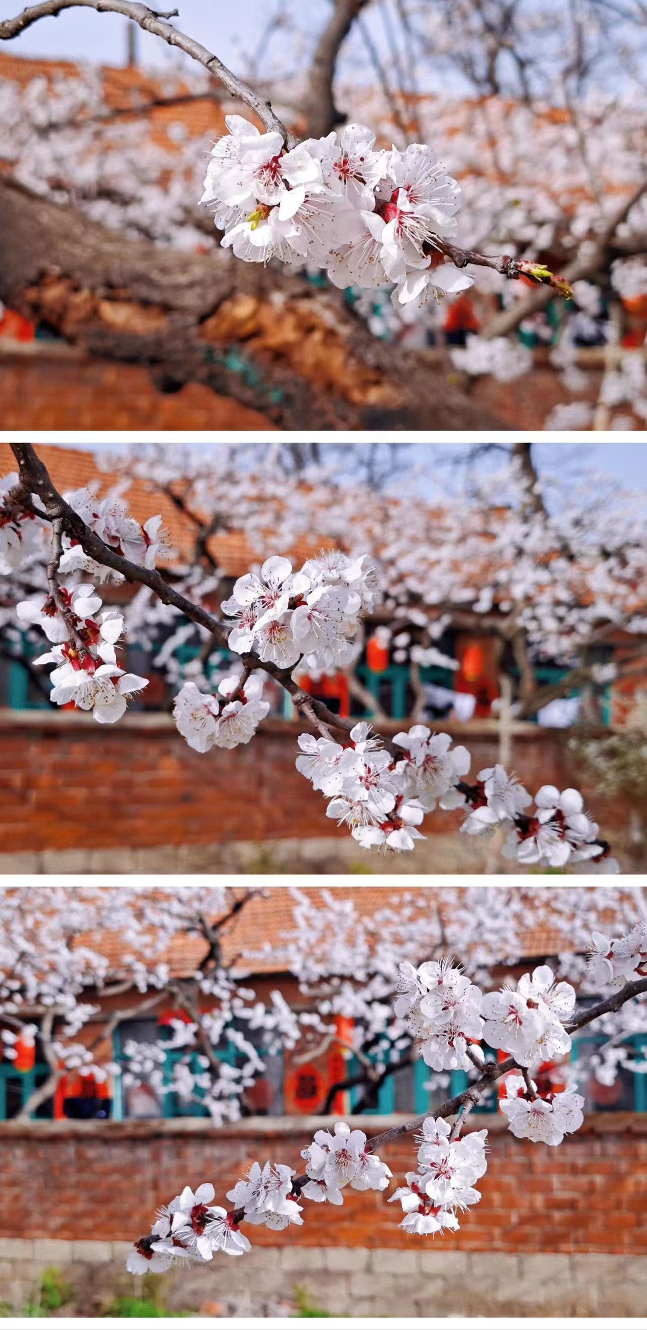 每年4月,孤山镇房前屋后,杏梅花爬满枝头,远看千堆雪,近观娇羞云,高处俯瞰,花海与村落错落有致,铺成一幅彩色画卷。