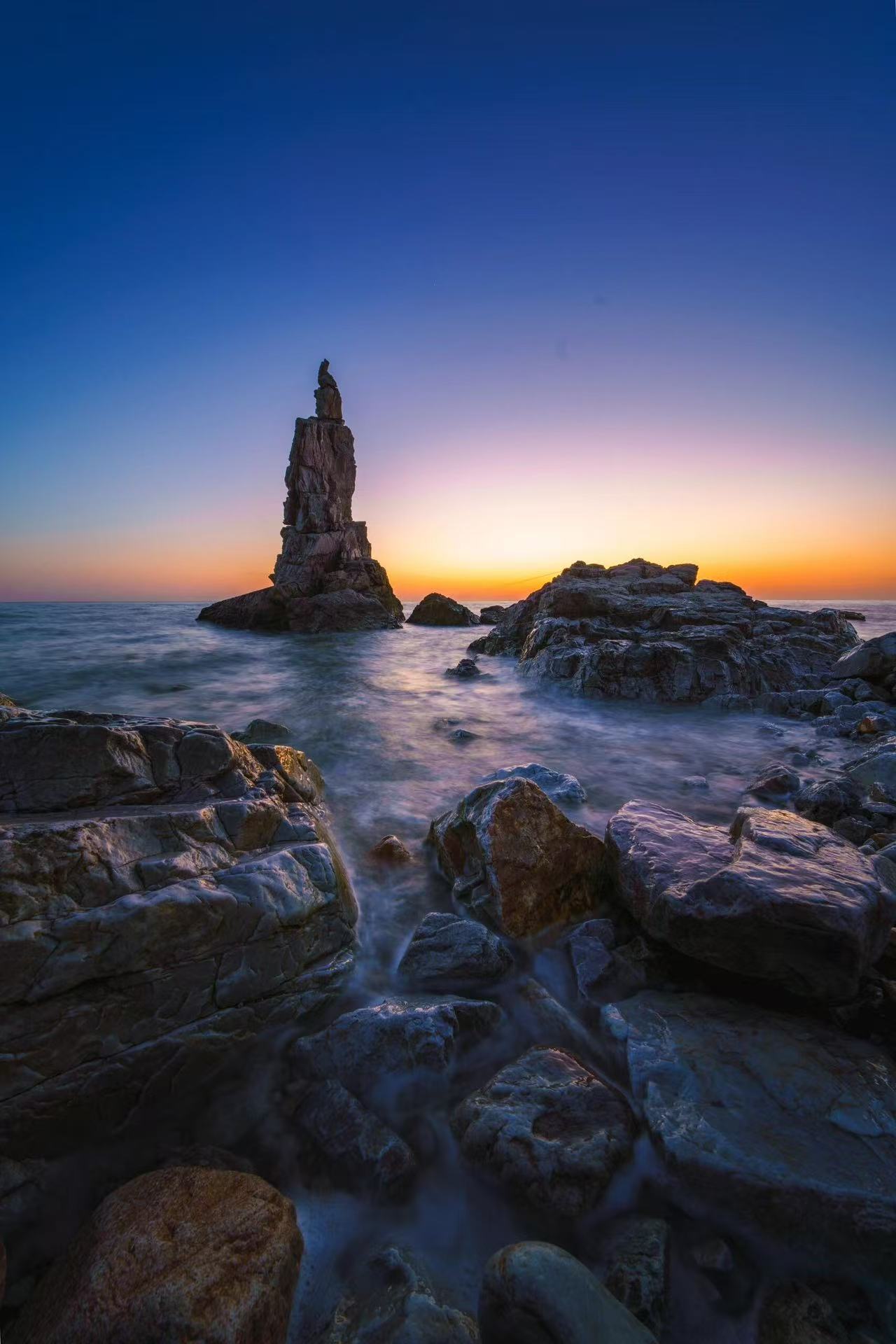 早餐之后乘车前往赏樱圣地——龙王塘樱花园拍摄浪漫樱花。下午前往双岛湾神龙仙岛拍摄海蚀奇石、高耸的海岬、将军石直到日落。将军石犹如两块巨石鬼斧神工的立于海滩正中,由东向西望去,状如两位将军立于一艘船的船头,幸运的话还能拍到平流雾中的若隐若现的蛇岛和鸟岛。