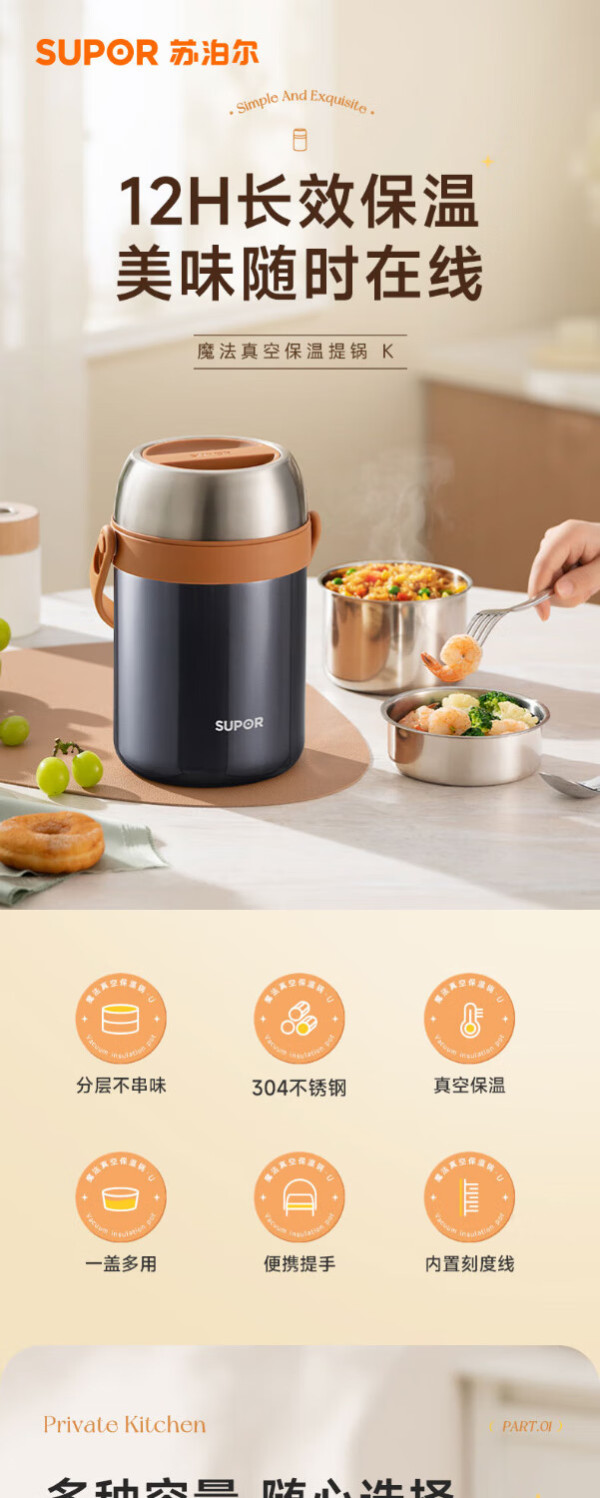 苏泊尔魔法保温提锅•K 2.0L 星辰黑 KFV20AD10