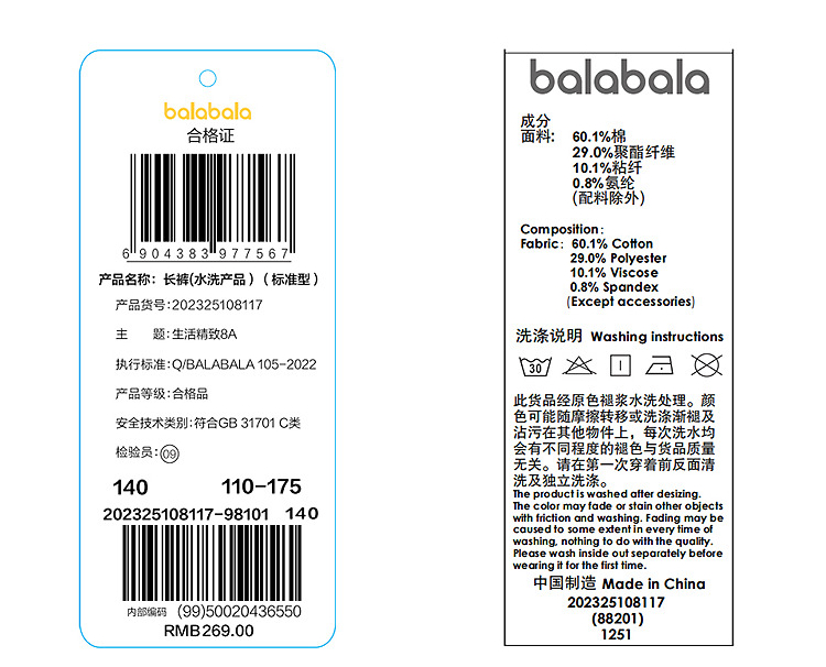 【商场同款】巴拉巴拉童装男童长裤儿童裤子2025新款秋装牛仔裤潮