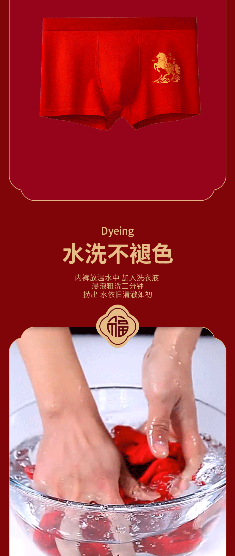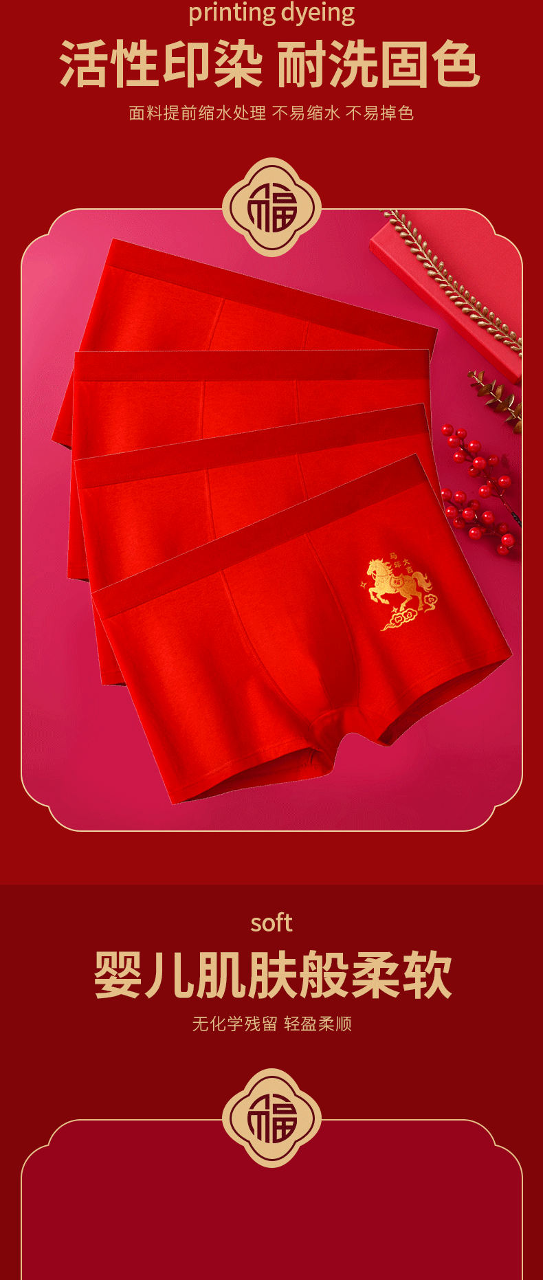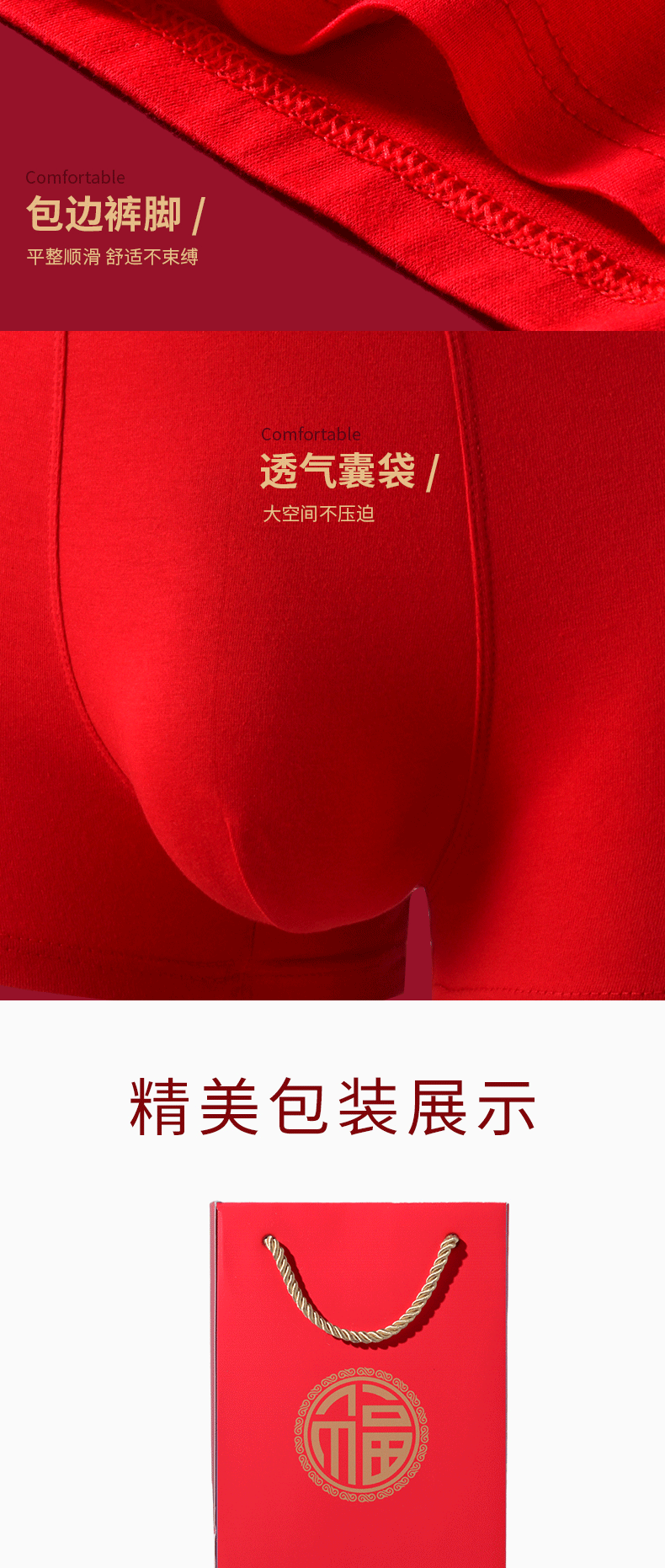 【AAA级抑菌❗️柔软细腻无痕透气】2026马年新年春节本命年男士红色中腰内裤纯棉大红平角裤喜庆四角裤礼盒透气大码男。jb