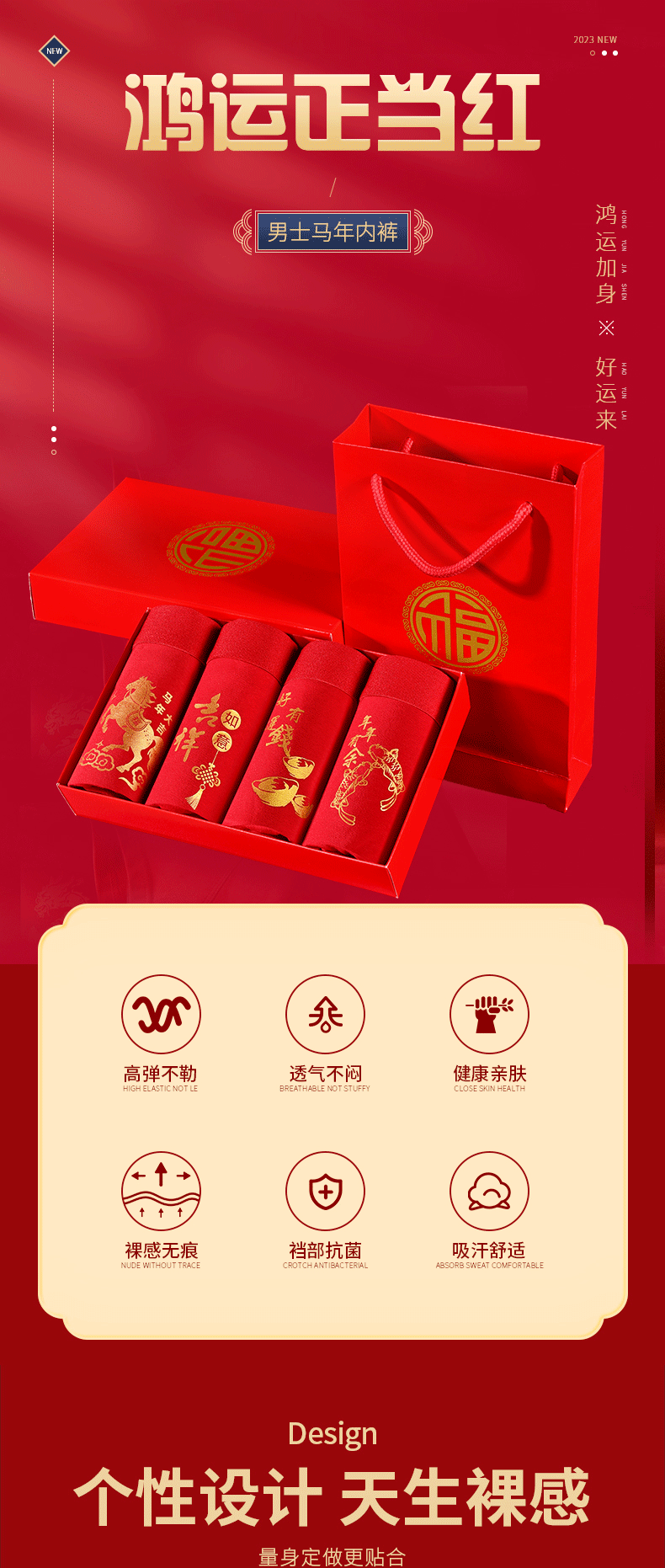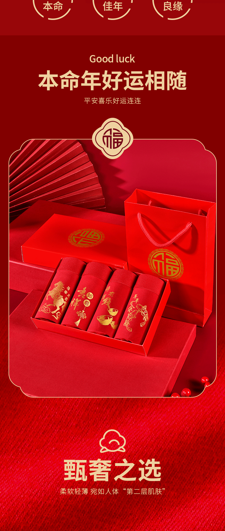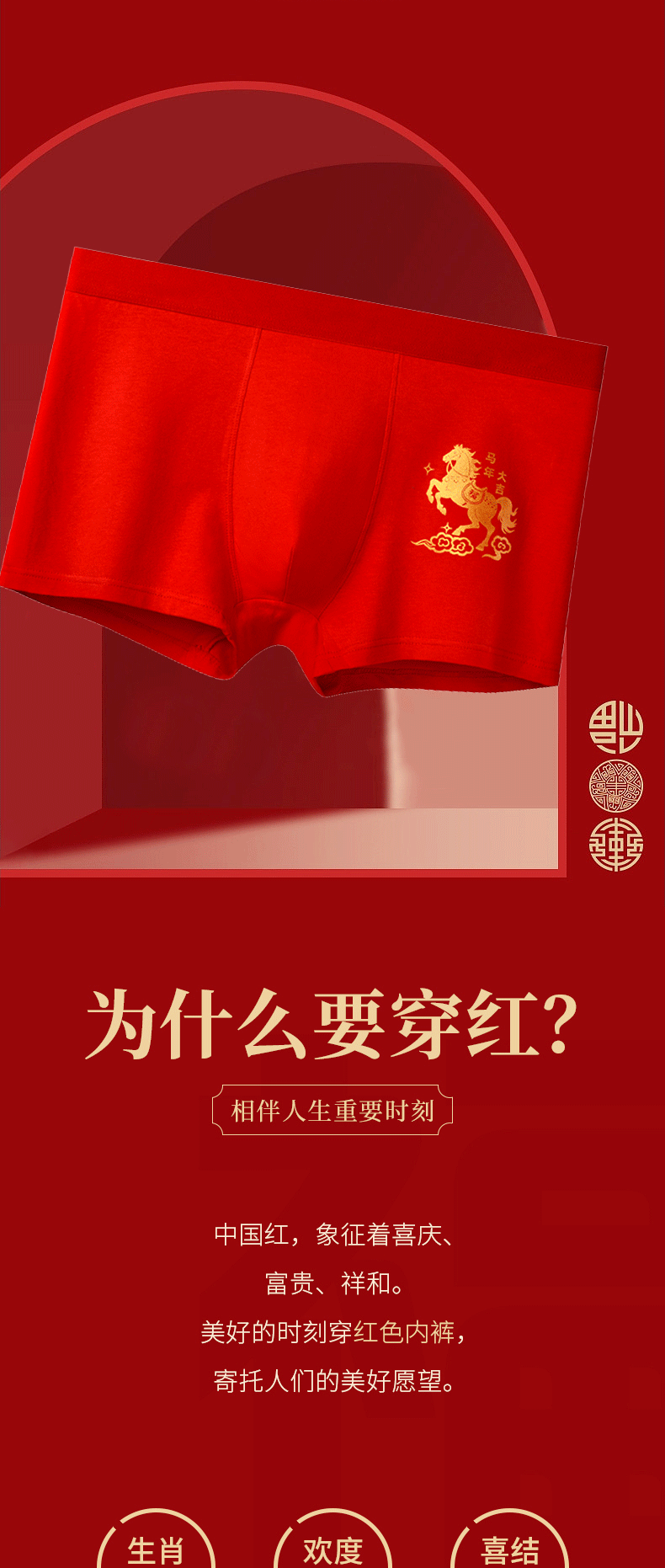 【AAA级抑菌❗️柔软细腻无痕透气】2026马年新年春节本命年男士红色中腰内裤纯棉大红平角裤喜庆四角裤礼盒透气大码男。jb