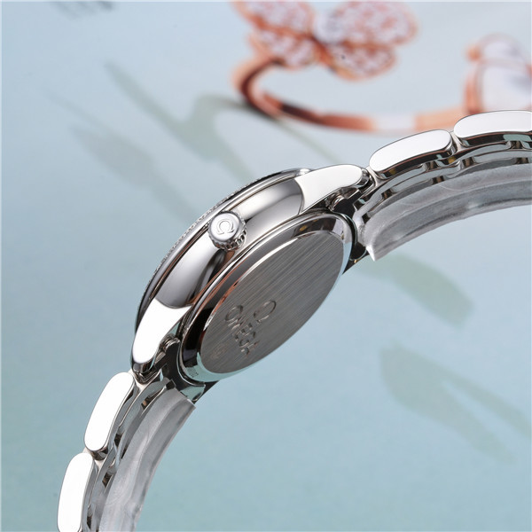 镜面材质 | 蓝宝石水晶玻璃 | 表盘 | 精钢表壳,镶钻表圈 银色表盘,白色珍珠母贝同心圆表盘,3、6、9及12时位置饰有钻石小时刻度及罗马数字小时刻度。 密底 |