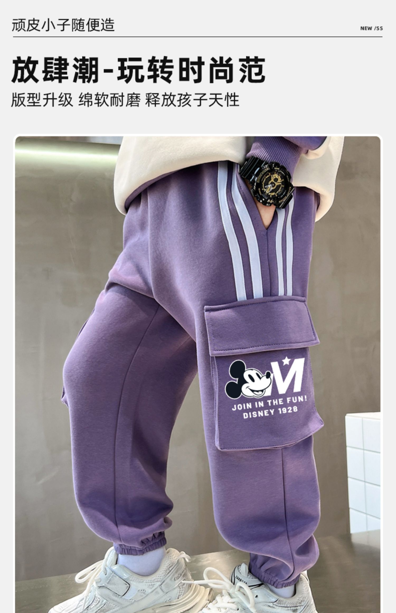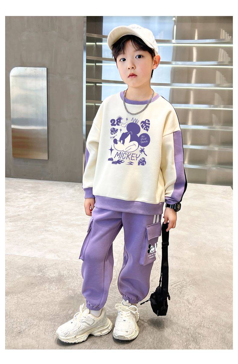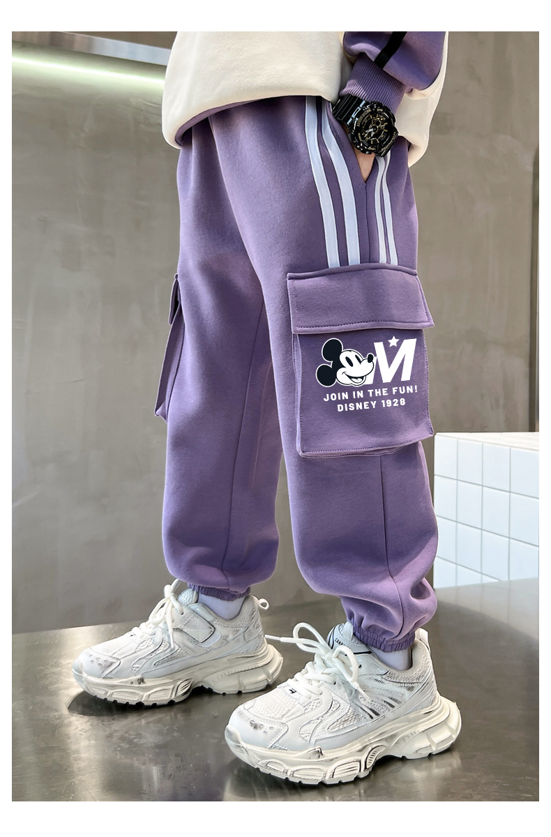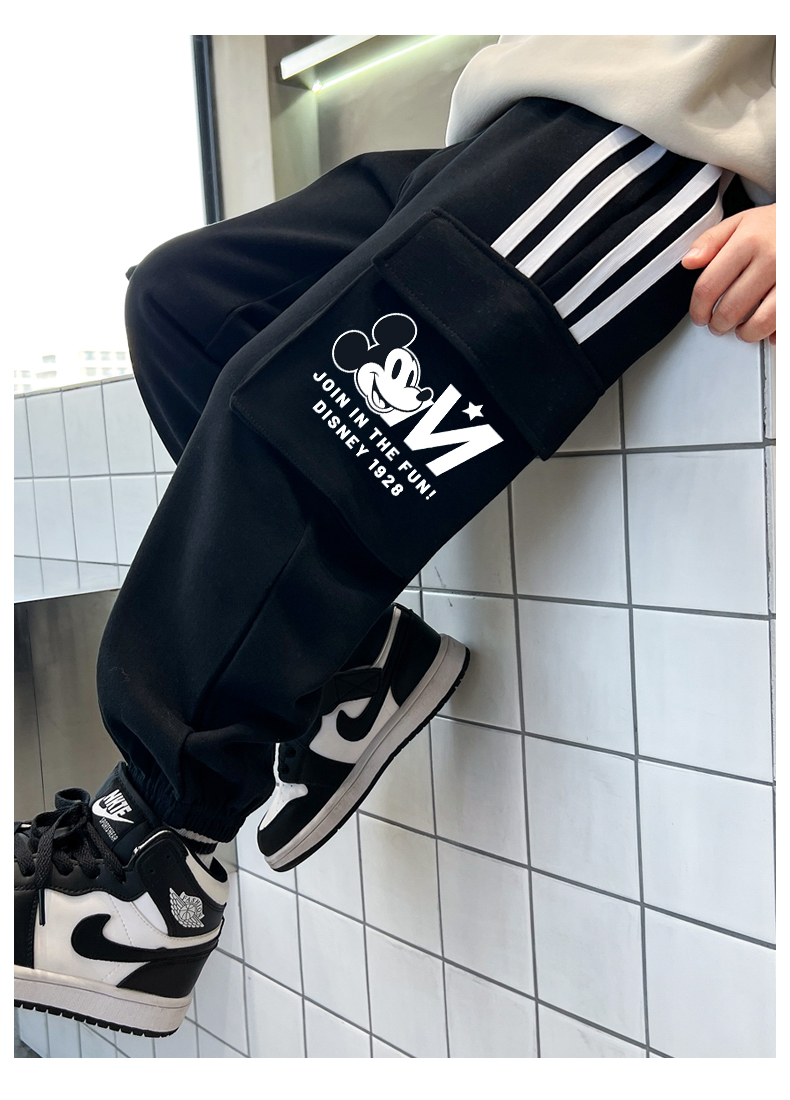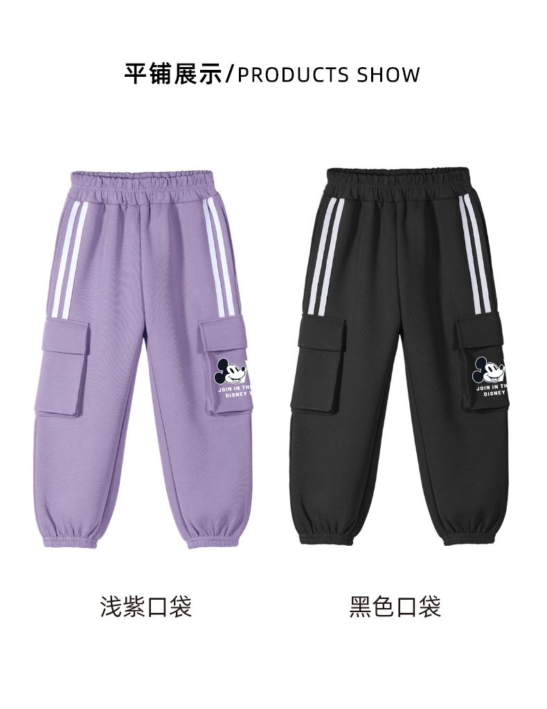 唯品迪士尼女童春秋款元青拼阔腿裤