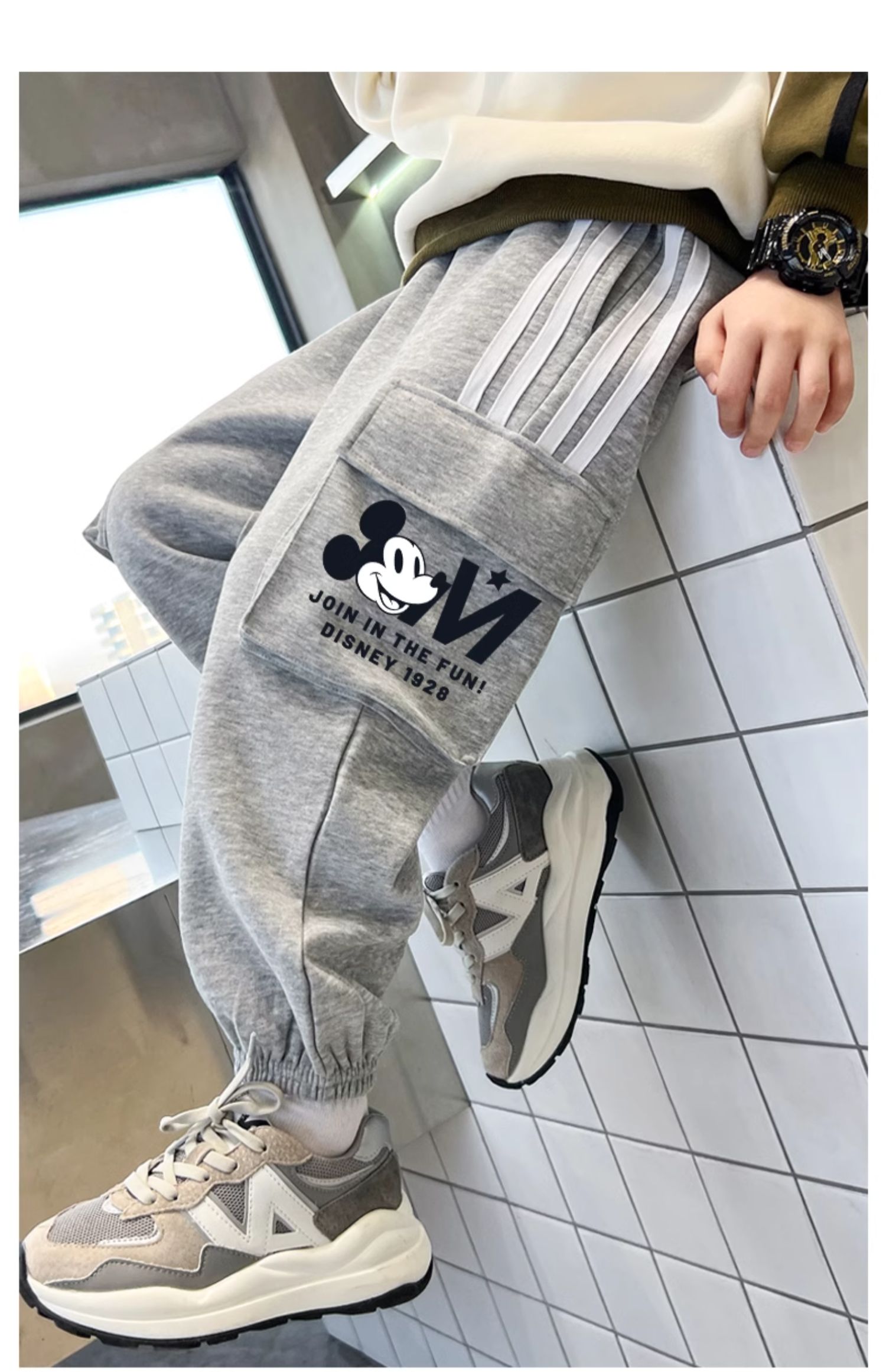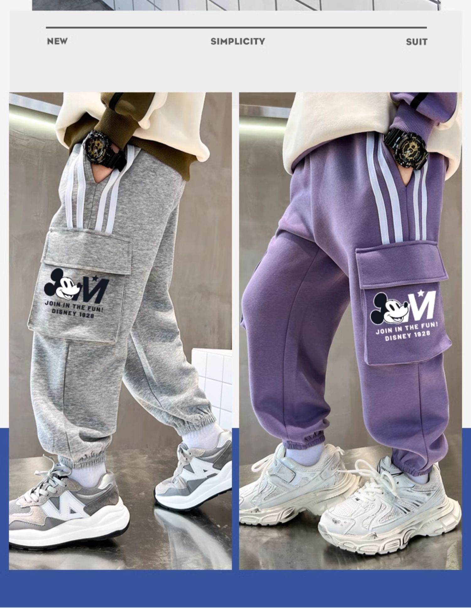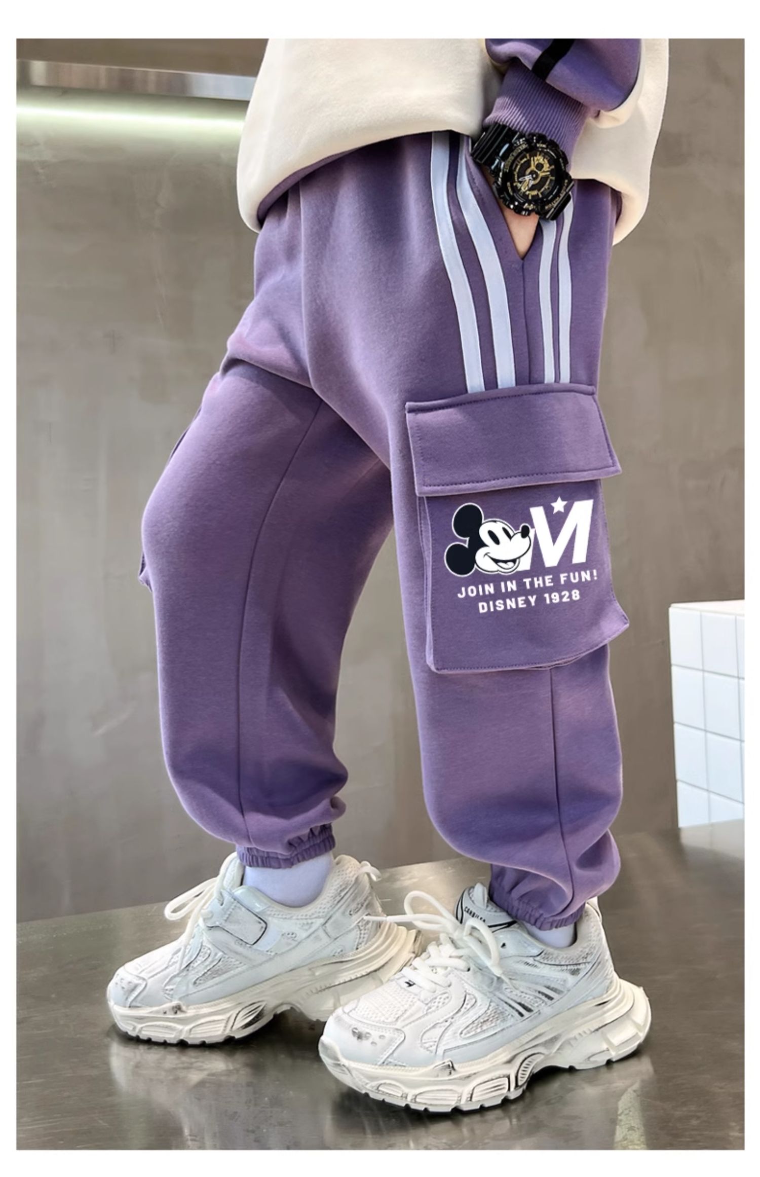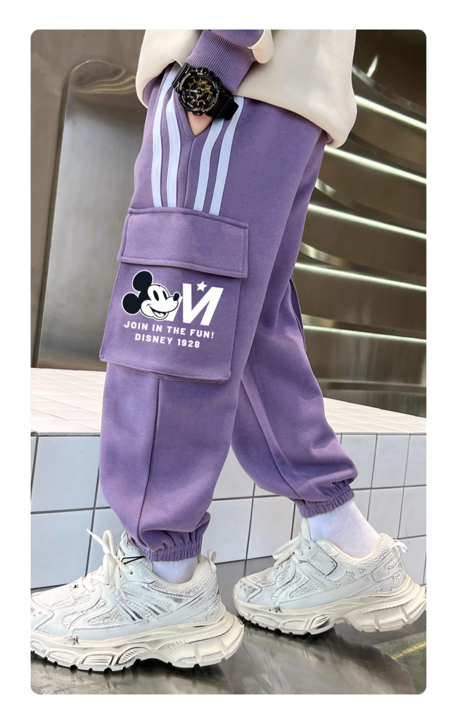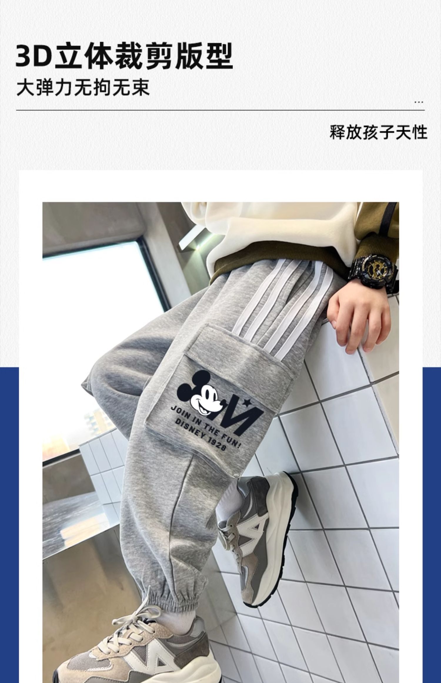 唯品迪士尼女童春秋款元青拼阔腿裤