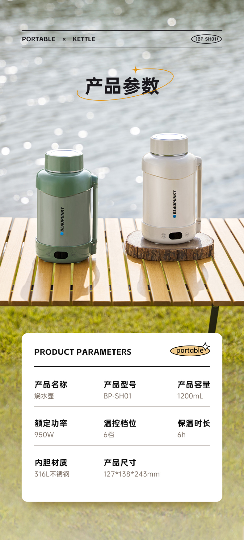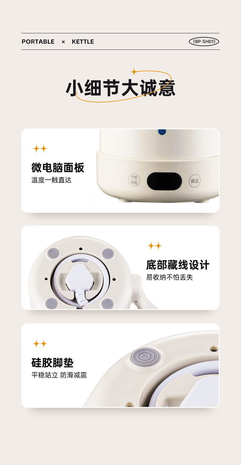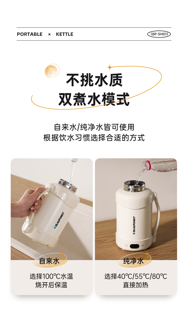 蓝宝烧水壶便携式电热水壶旅行出差大容量自动保温一体家用烧水杯