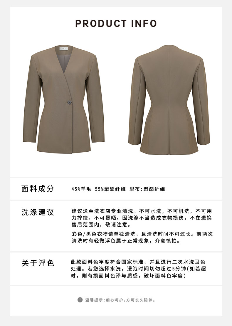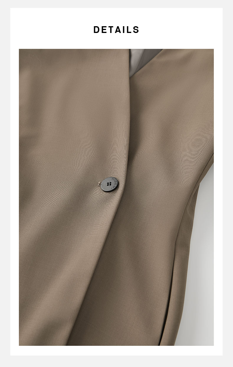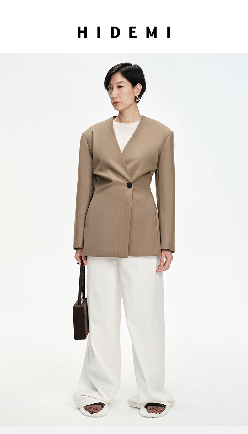 HIDEMI 卡其色V领设计感一粒扣收腰式西装外套