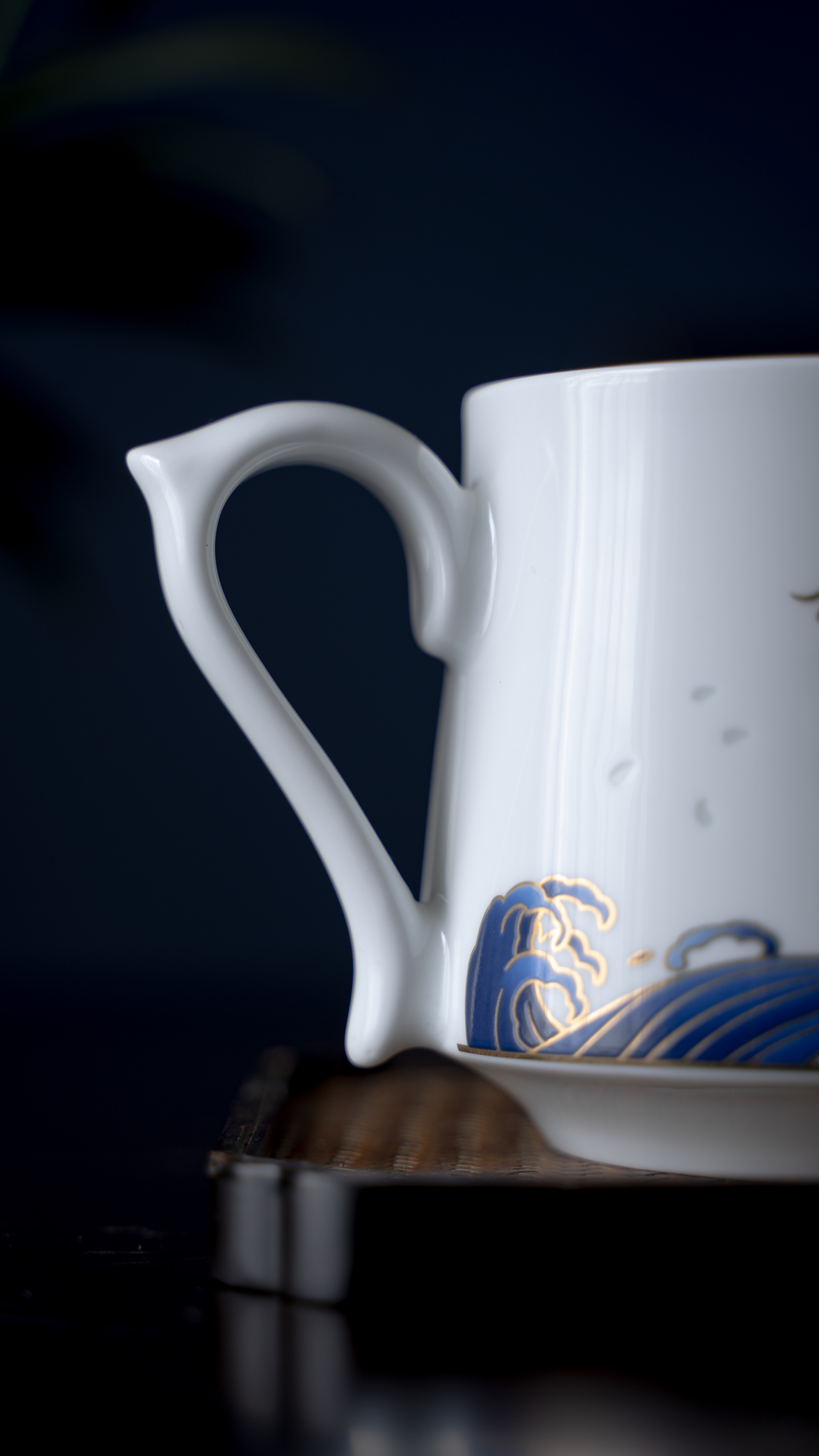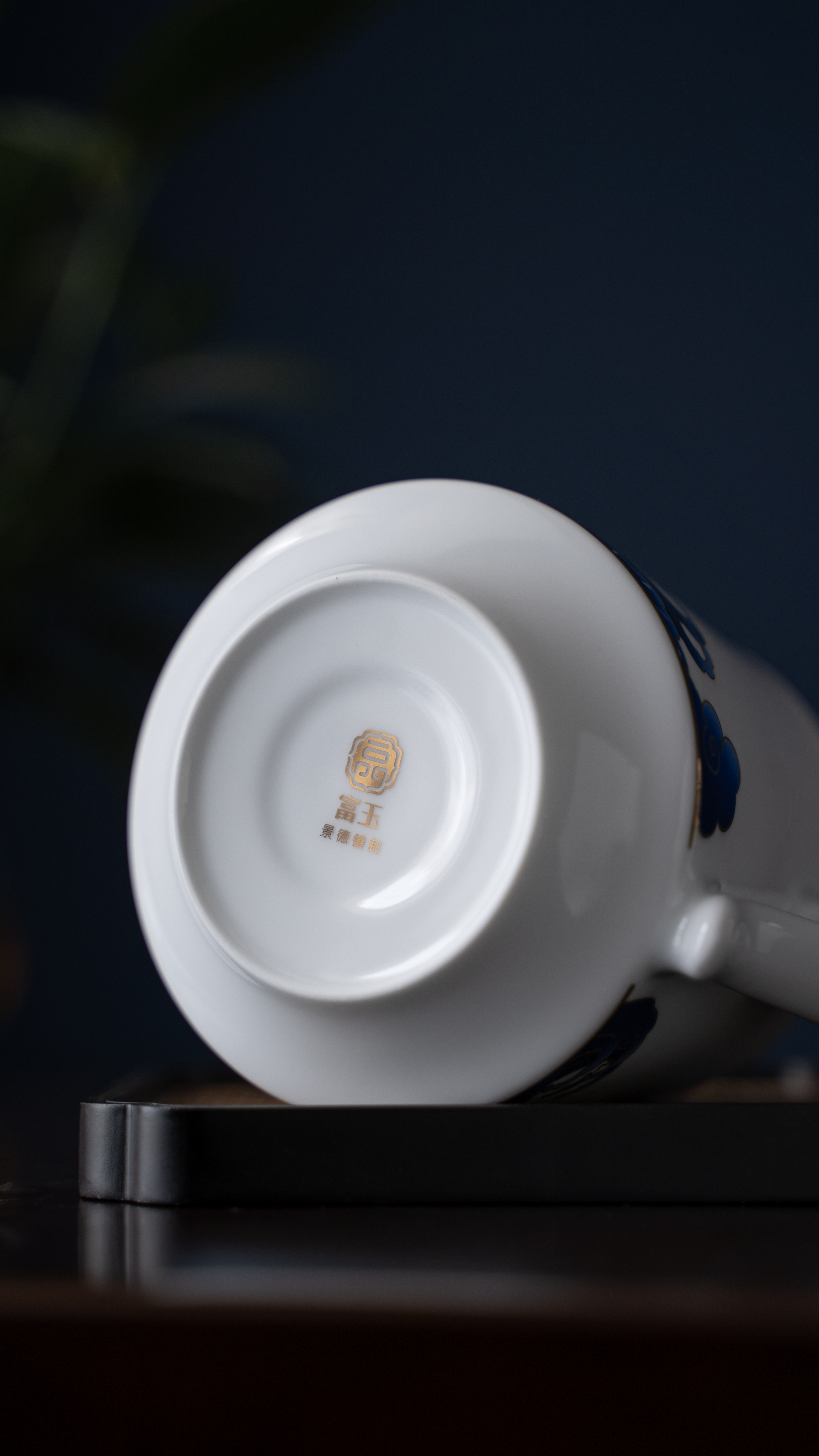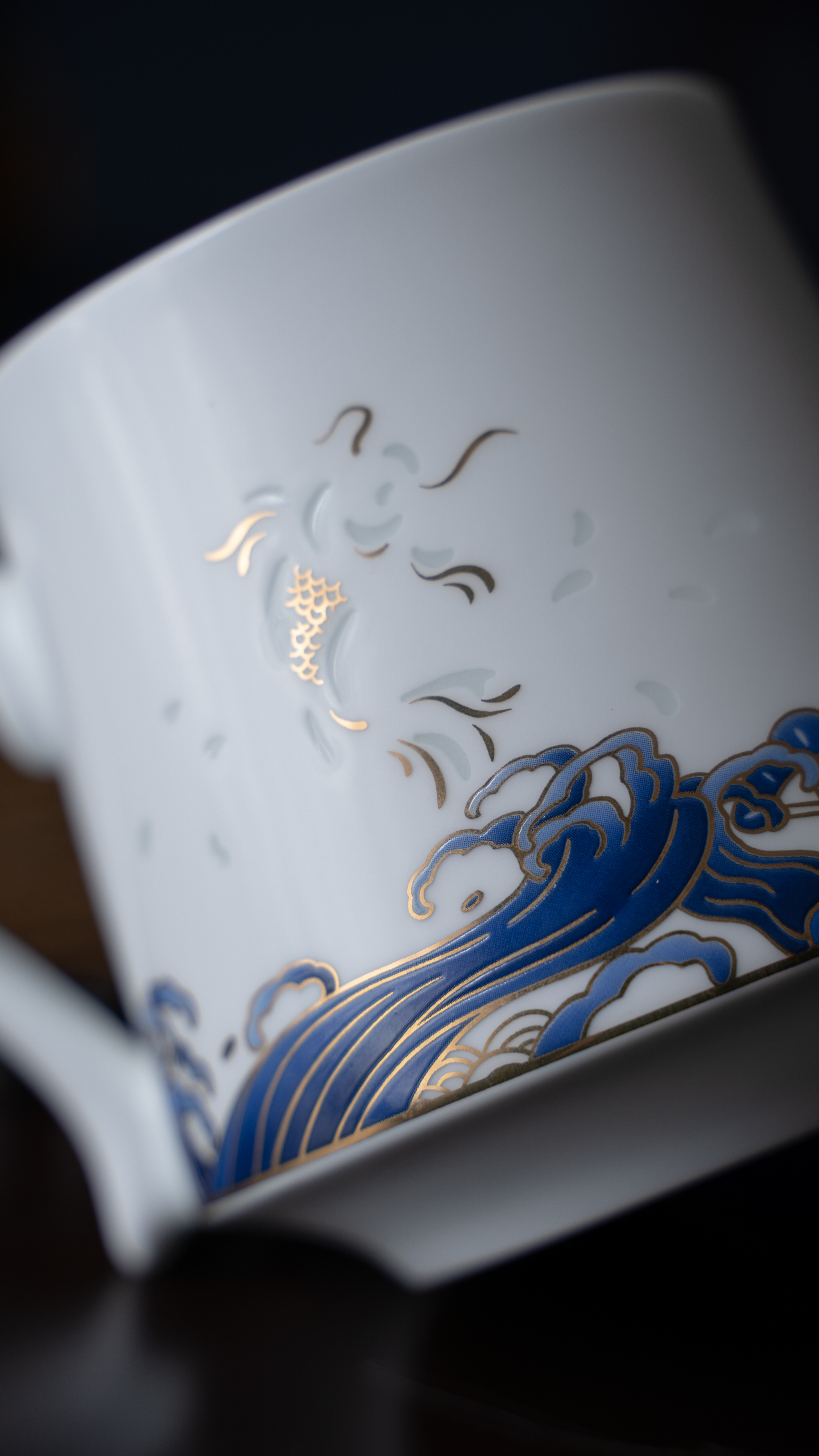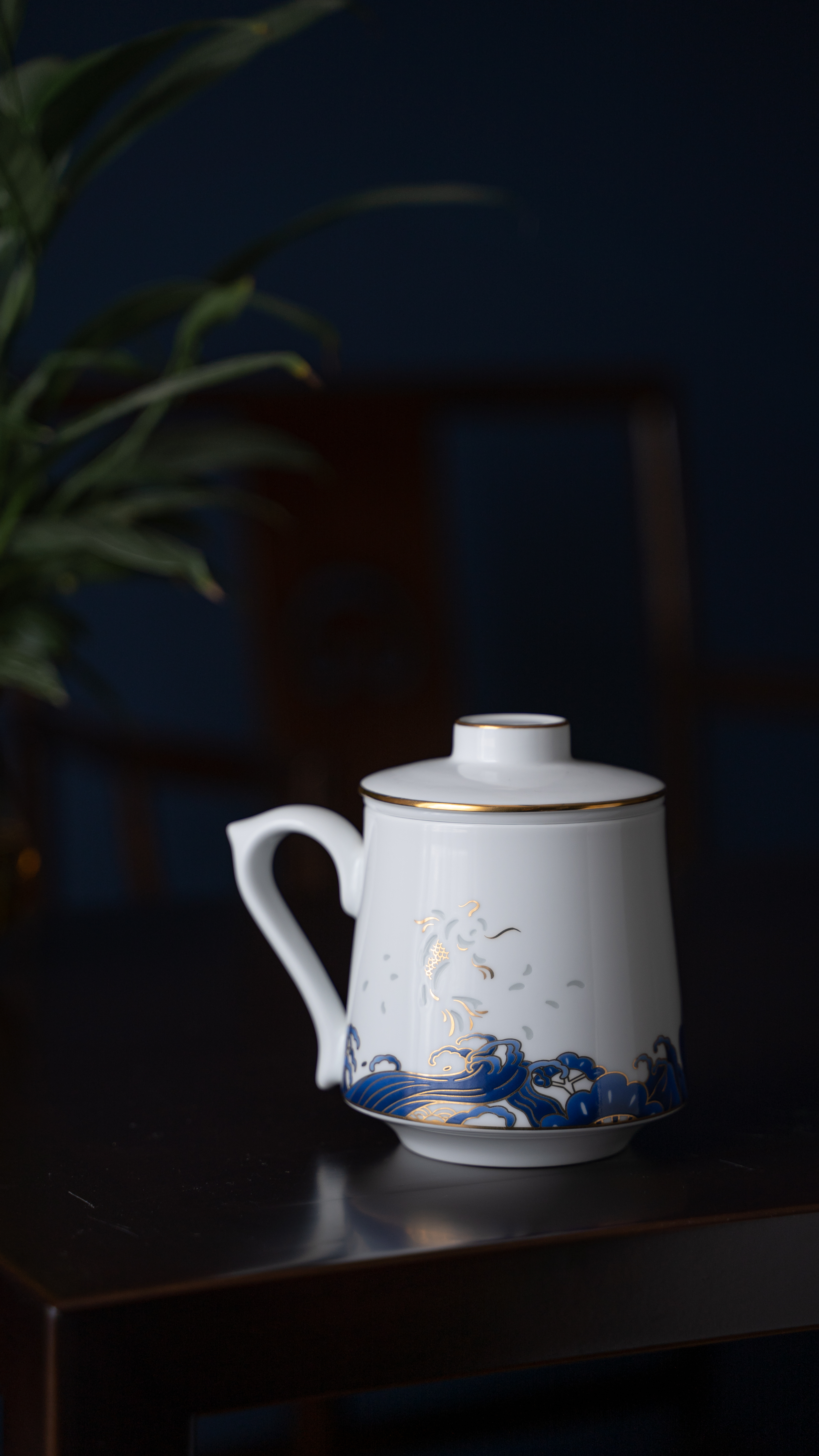 富玉 景德镇陶瓷鱼跃龙门茶漏杯大容量水杯玲珑茶漏杯