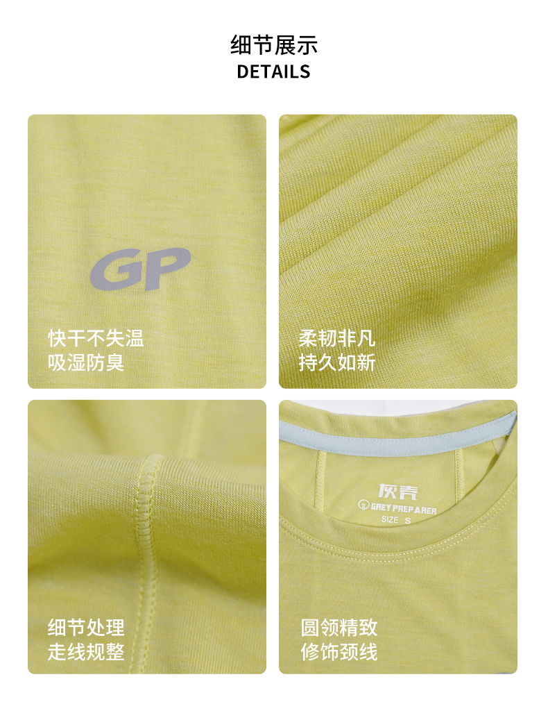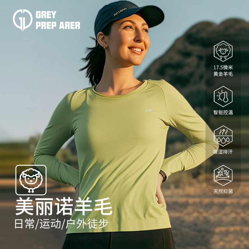 灰壳GP四季美利奴天丝羊毛速干衣女户外徒步长美丽诺运动T恤