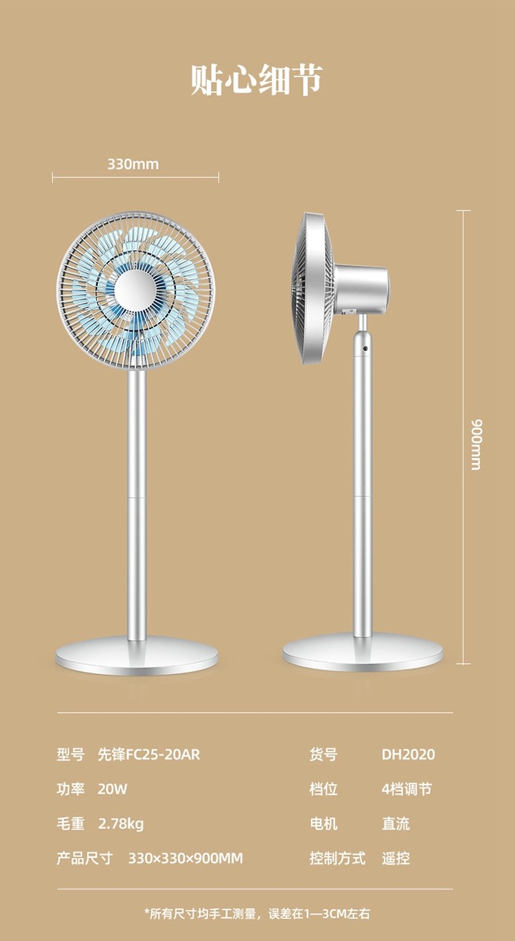 先锋(SINGFUN)空气循环扇/电风扇/家用静音落地扇/空气对流遥控风扇 FC25-20AR【XF】产地直发
