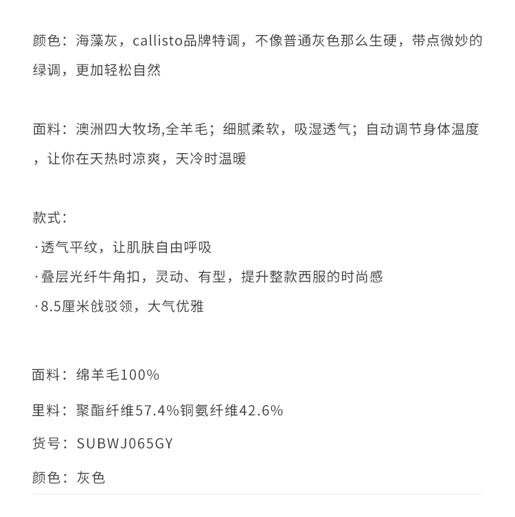 callisto高智系列海藻灰绵羊毛西服