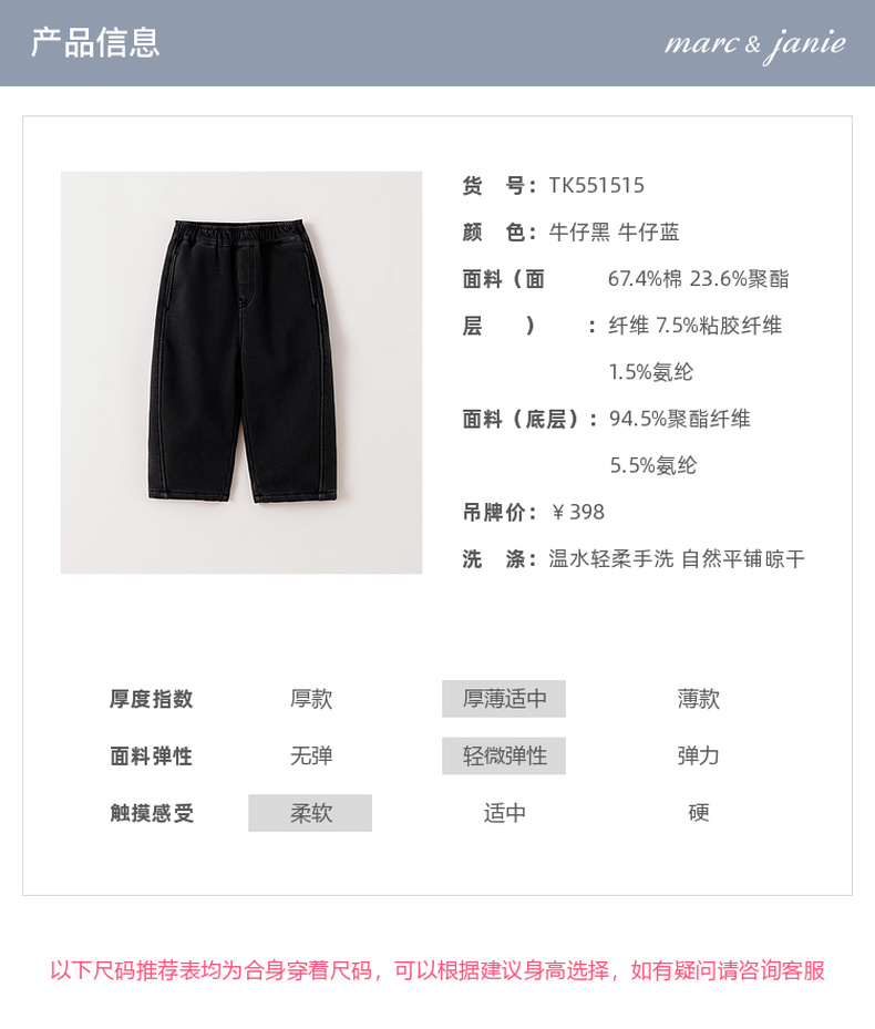 马克珍妮女童保暖奥利绒牛仔香蕉裤2025年秋冬新款551515